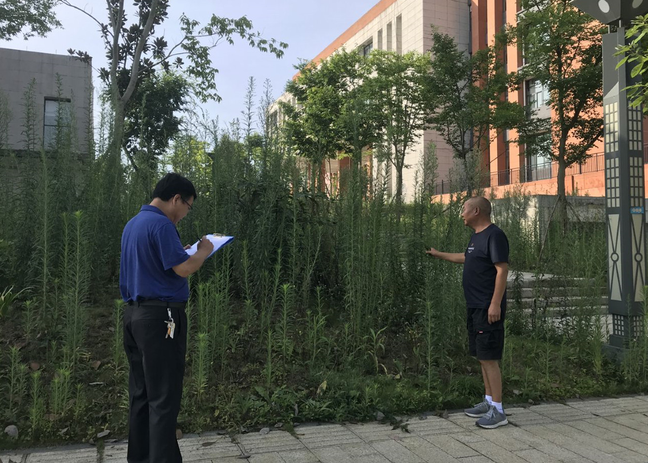 检查组对学校的治安、消防、危化品保管、道路交通、围墙、山体、周边环境、“三防”设备设施等进行了全面检查,通过检查,发现存在的隐患有:1.汛期因雨水充足,校园绿化区域植被生长较快,未及时修剪易滋生隐匿蛇虫;2.学生公寓一楼防护网损坏严重;3.东区学生公寓旁围墙有人翻爬;4.部分监控与总控信号连接不畅;5.消防指示标识损坏等安全隐患。针对排查中存在的问题和安全隐患,保卫处将及时反馈,督促相关部门立即整改,防止引发安全事故发生,确保校园师生的生命和财产安全。