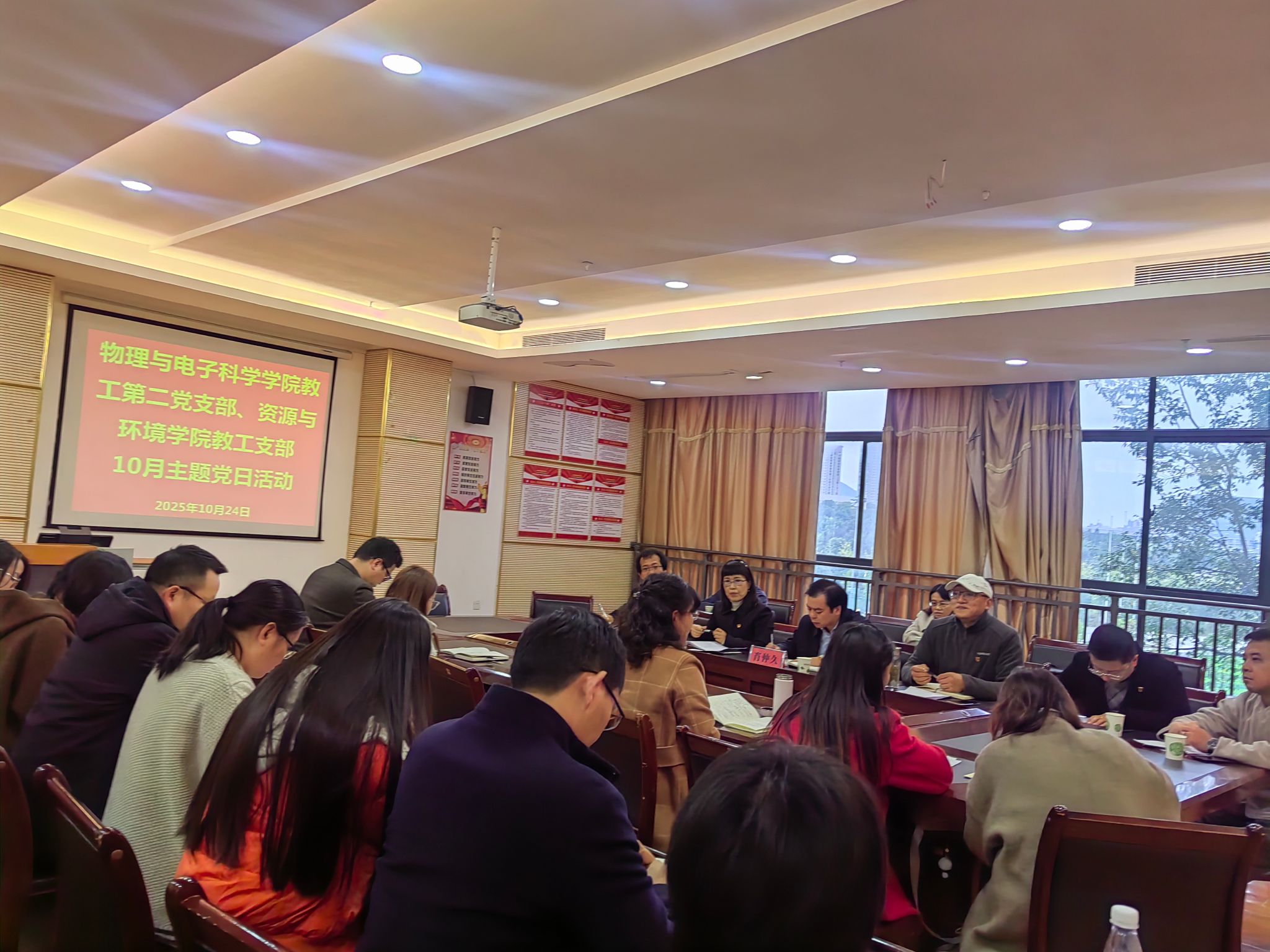 为深入学习贯彻全国教育大会精神开创教育强国设新局面,切实强化教师队伍建设,资源与环境学院教工党支部与物理与电子科学学院教工党支部认真学习第二次集中大课后,于执理楼106会议室结对开展了“立德树人守初心,科教融合促发展,争做‘四有’好老师”主题党日活动。学校副校长校仲久同志莅临指导,两院教工党员参加,活动由我院党总支副书记谢语主持。
