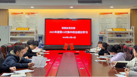 12月12日上午,财务处党支部召开了2025年度第19次政治理论学习,财务处党支部全体党员干部参加,非党员同志列席,会议由党支部书记、处长金星主持。