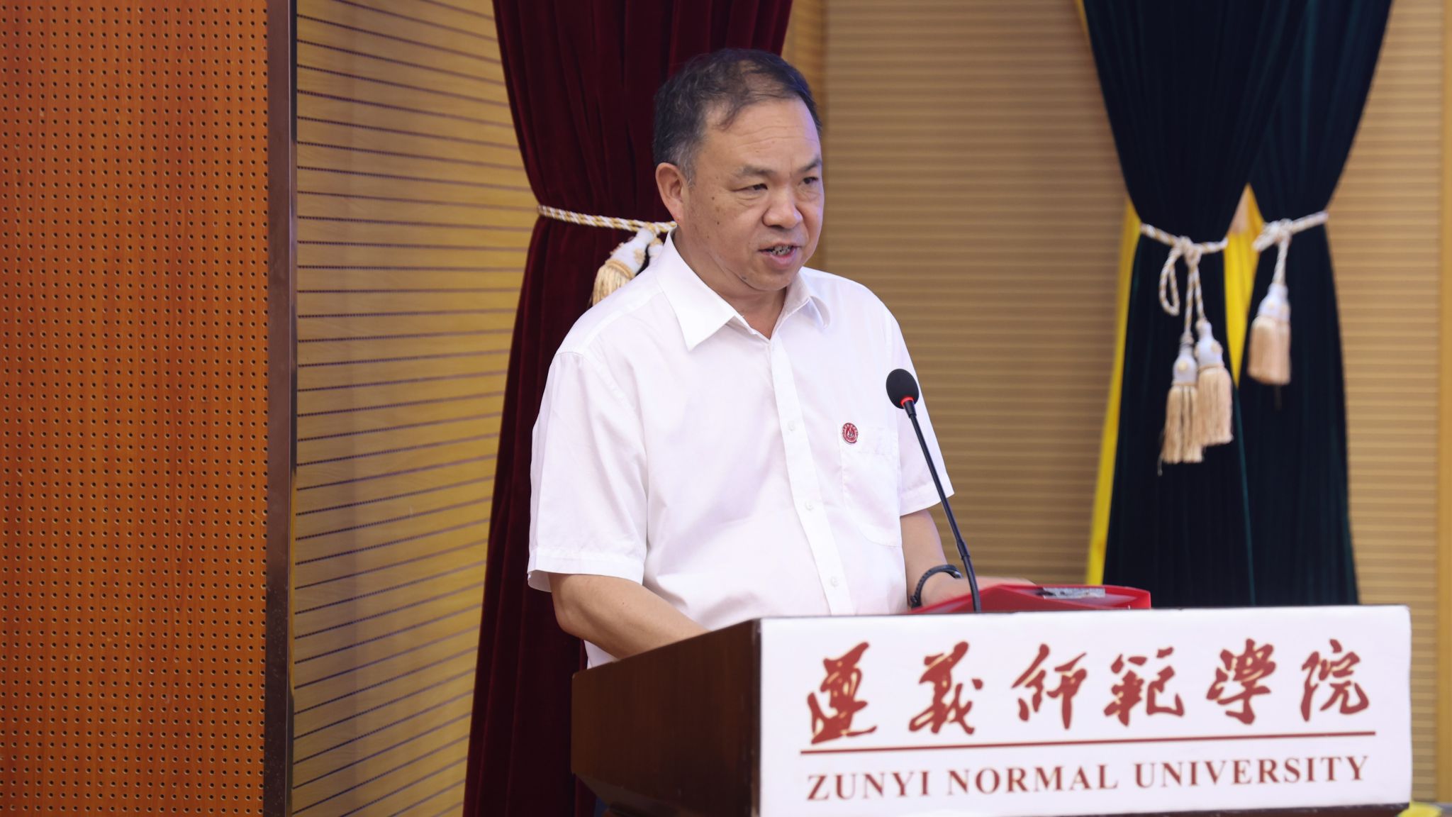 遵义师范学院党委委员、副校长胡贵勇向学生代表授旗。