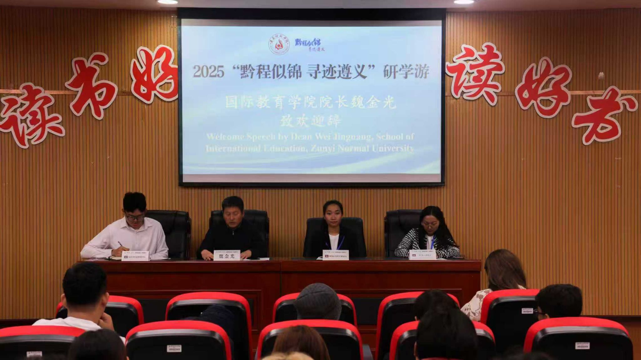 10月25日上午,伴随着热烈的掌声,以“前程似锦,寻迹遵义”为主题的中柬学生研学游活动开幕式在我校图书馆报告厅隆重举行。遵义师范学院国际教育学院院长魏金光教授、柬方领队教师及全体研学学生齐聚一堂,共同开启了这场文化交流与留学探索之旅。