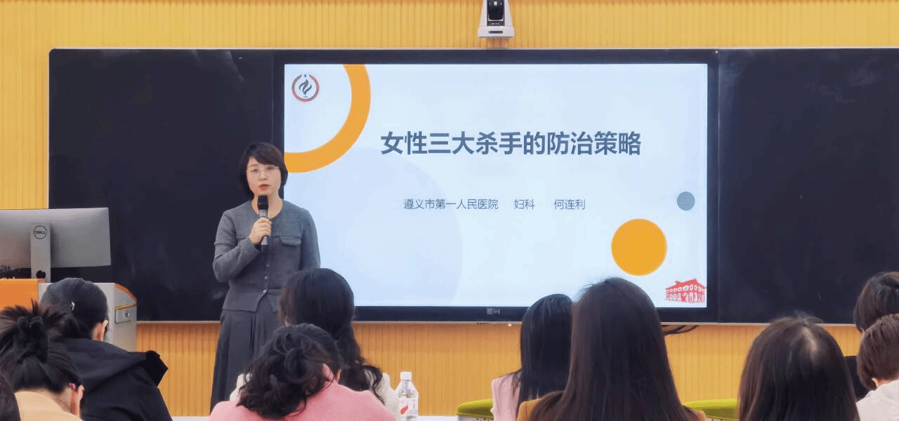 冬日暖阳,温情洋溢。为切实关爱我校女职工身心健康,普及健康知识,校工会于11月14日下午成功举办“工会护航、守护巾帼健康”女职工健康知识讲座。本次活动特邀遵义市第一人民医院妇科何连利主任与普外科霍金龙博士两位资深专家担任主讲,两位专家围绕“女性三大杀手的防治策略”、“甲状腺与乳腺健康”等知识为在场女教职工及关注健康的同学们带来了一场专业、实用、温暖的健康科普盛宴。