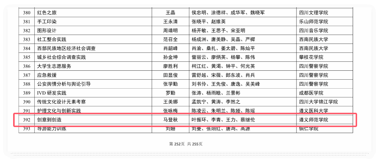 近日,教育部公布第三批国家一流课程名单,工学院马登秋博士负责的《创意到创造》课程成功入选国家一流社会实践课程,课程团队成员为:叶振环、李青、王力、蔡继伦,该课程入选标志着我院专业实践教学改革取得重大突破。