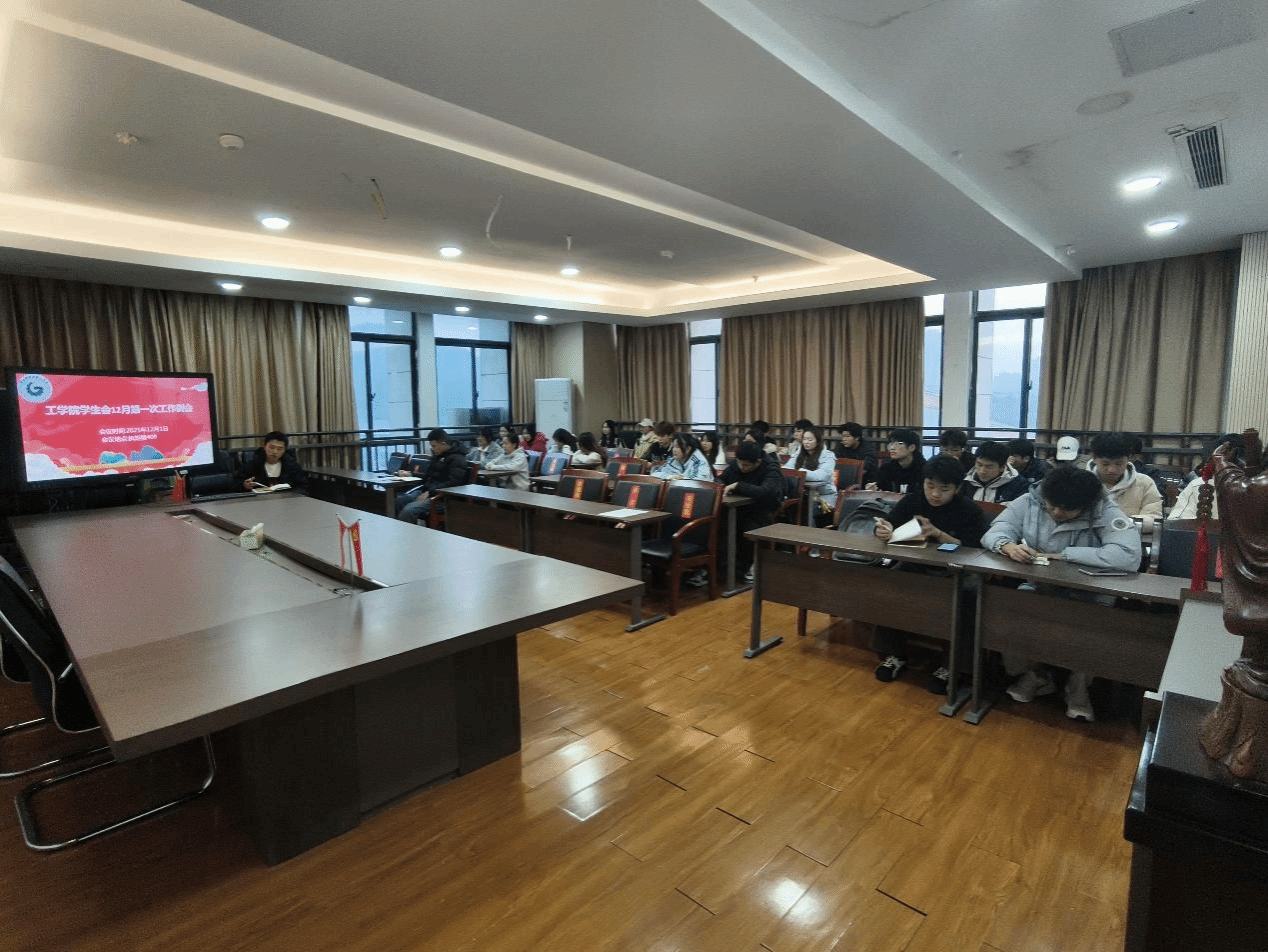 2025年12月1日下午,工学院团总支(学生会)12月第一次工作例会在执矩楼409会议室顺利召开。辅导员(关工委委员)郑鹏程、陈松,学生会各部门负责人、办公室全体成员出席会议。