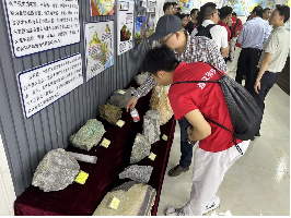 走进贵州省地矿局106地质大队陈列馆,同学们伴随着讲解老师的脚步,追寻岁月痕迹,探索发展历程。一帧帧照片、一幕幕场景、一个个老物件,再现了106地质大队建队六十多年来,敢于探索、敢于实践的精神,描绘了波澜壮阔的历史画卷,浓缩了贵州地质人的奋斗史,发展史跃然于眼前。同学们激动的说,“黔中无闲石,贵地多宝藏”,百闻不如一见,我省矿产资源丰富,煤、磷、铝、锰等49种矿产资源储量排名全国前10位,目前已发现矿种137种,占全国已发现矿种的80%,今天能够认识这么多的矿石,可谓收获满满,不虚此行!