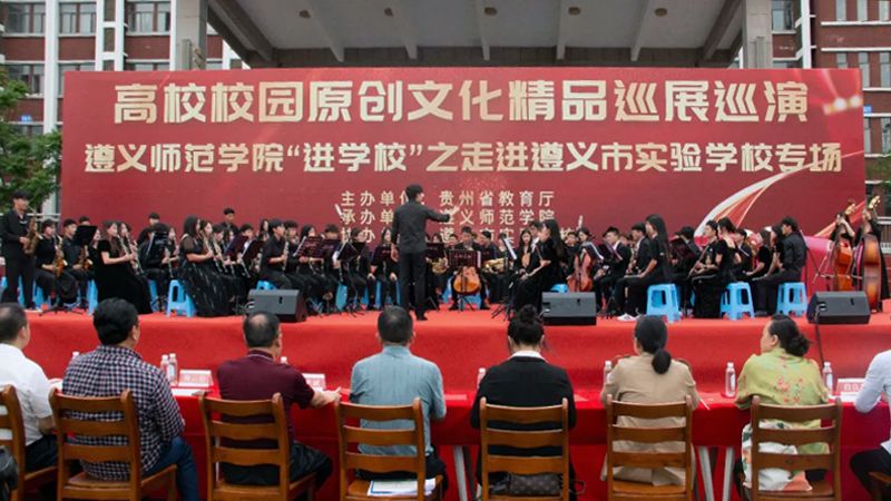 学院立足红色文化传承与创新,创作了一批具有地域特色和时代气息的艺术精品。大型红色歌舞剧《遵义会议精神永放光芒》获贵州省少数民族文艺会演剧目银奖;原创舞剧《天渠》入选贵州省高校思想政治教育工作质量提升综合改革与精品建设项目,受到主流媒体广泛报道。承办德国舒曼国际音乐大赛中国选拔赛、贵州省合唱艺术展演和遵义合唱节等大型活动。与贵州伟大转折文化发展有限公司、多彩贵州文化艺术股份有限公司、遵义演艺集团等企业深度合作,学生参与《伟大转折》《多彩贵州风》《天酿》等演出,实现艺术实践与市场接轨。学院青年志愿者长期服务地方中小学艺术教育,参与新蒲新区新舟镇绿塘村长效帮扶,社会服务成效显著。