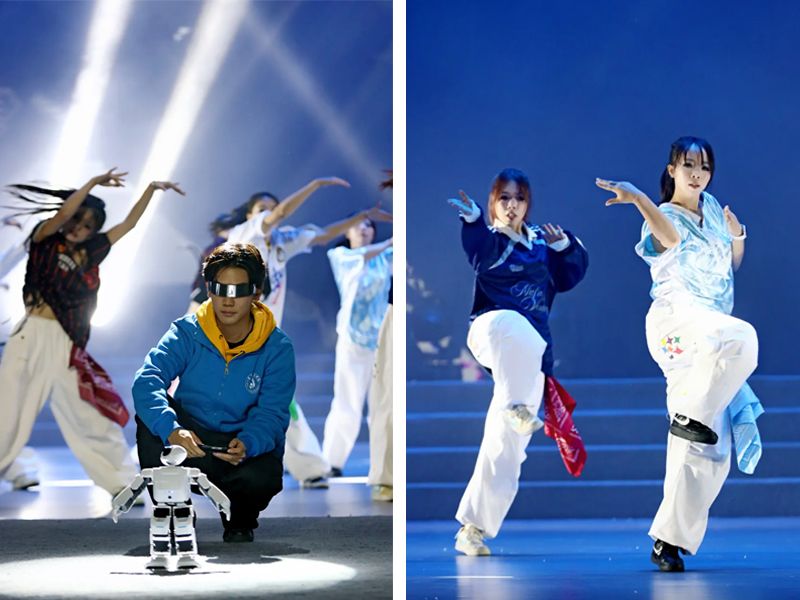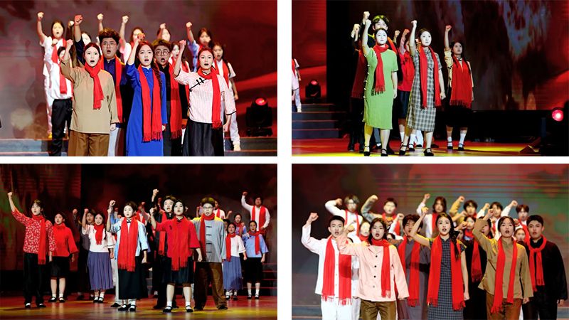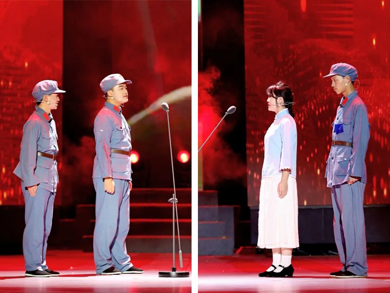 遵义师范学院的合唱《祖国不会忘记》与歌曲《黄河颂》《保卫黄河》《没有共产党就没有新中国》《我们走在大路上》,传递家国情怀,引发全场跟唱;红色剧本杀《风声之裘庄一刻》沉浸式演绎红色故事;舞台剧《三线长歌》再现三线建设者奋斗史;街舞与机器人表演《青春SHOW场》融合潮流与科技,为观众带来青春和科技之秀;情景朗诵《一封家书——抉择与怜子心》以革命先辈的故事展现了坚定信仰与无畏精神,情景朗诵《一封家书——丹心照归途》体现了知识分子的至诚报国,与汇川区重庆路小学合作的情景朗诵《一封家书——雪域红心》则反映了遵师青年“忠诚、坚韧、担当”的“红心”特质,打动观众。