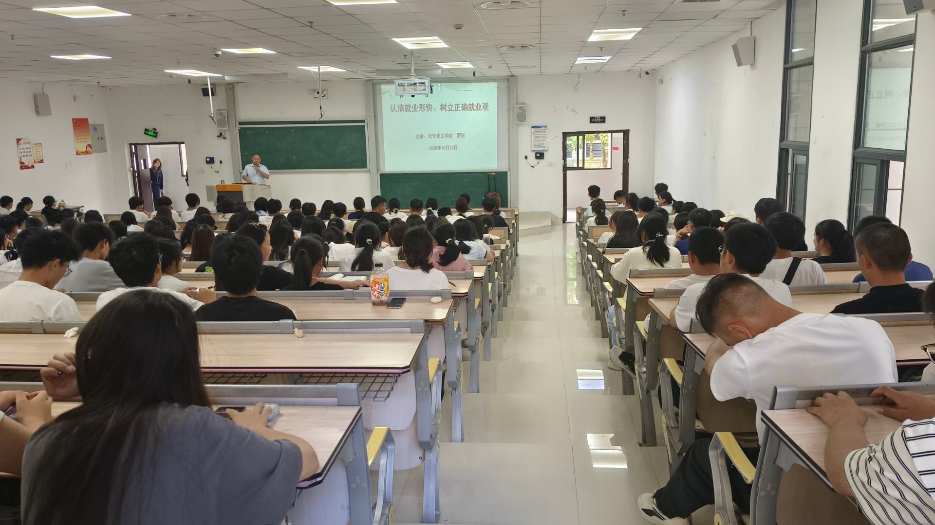10月13日,化学化工学院在执闳楼105教室面向2025级全体新生组织开展了专题教育活动,围绕入党教育、成长成才规划和就业指导三大主题,引导新生扣好大学“第一粒扣子”,学院党总支书记罗进主讲。