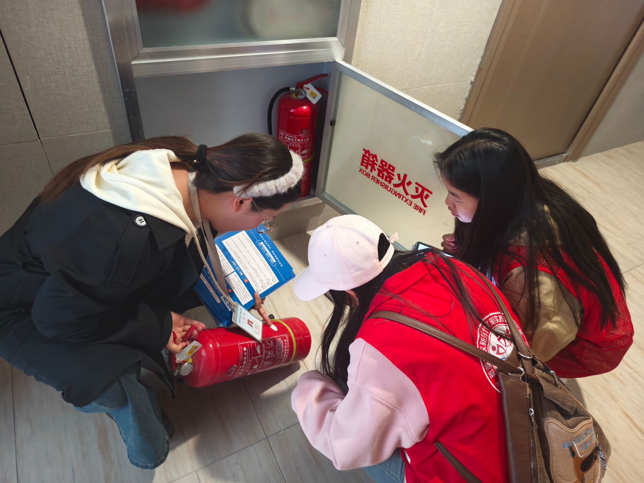 活动现场,志愿者们迅速分成多个小组,同步推进两项重点工作。一方面深入居民家中开展消防与防诈骗宣传,另一方面对社区内“九小场所”进行全面信息摸排与安全隐患排查。在消防宣传时,志愿者不仅检查灭火器是否过期、功能是否完好,还手把手演示“一提二拔三瞄四压”的操作步骤,将安全知识转化为实用技能;防诈骗宣传则结合真实案例,帮社区阿姨识破“保健品退款”骗局,用接地气的讲解守住居民“钱袋子”。在“九小场所”摸排中,志愿者从餐饮店的燃气安全到便利店的应急通道,逐项核查细节,发现插座松动、灭火器压力不足等隐患时,及时提醒商户整改,同时精准登记场所信息,为社区隐患排查与应急管理提供数据支撑。