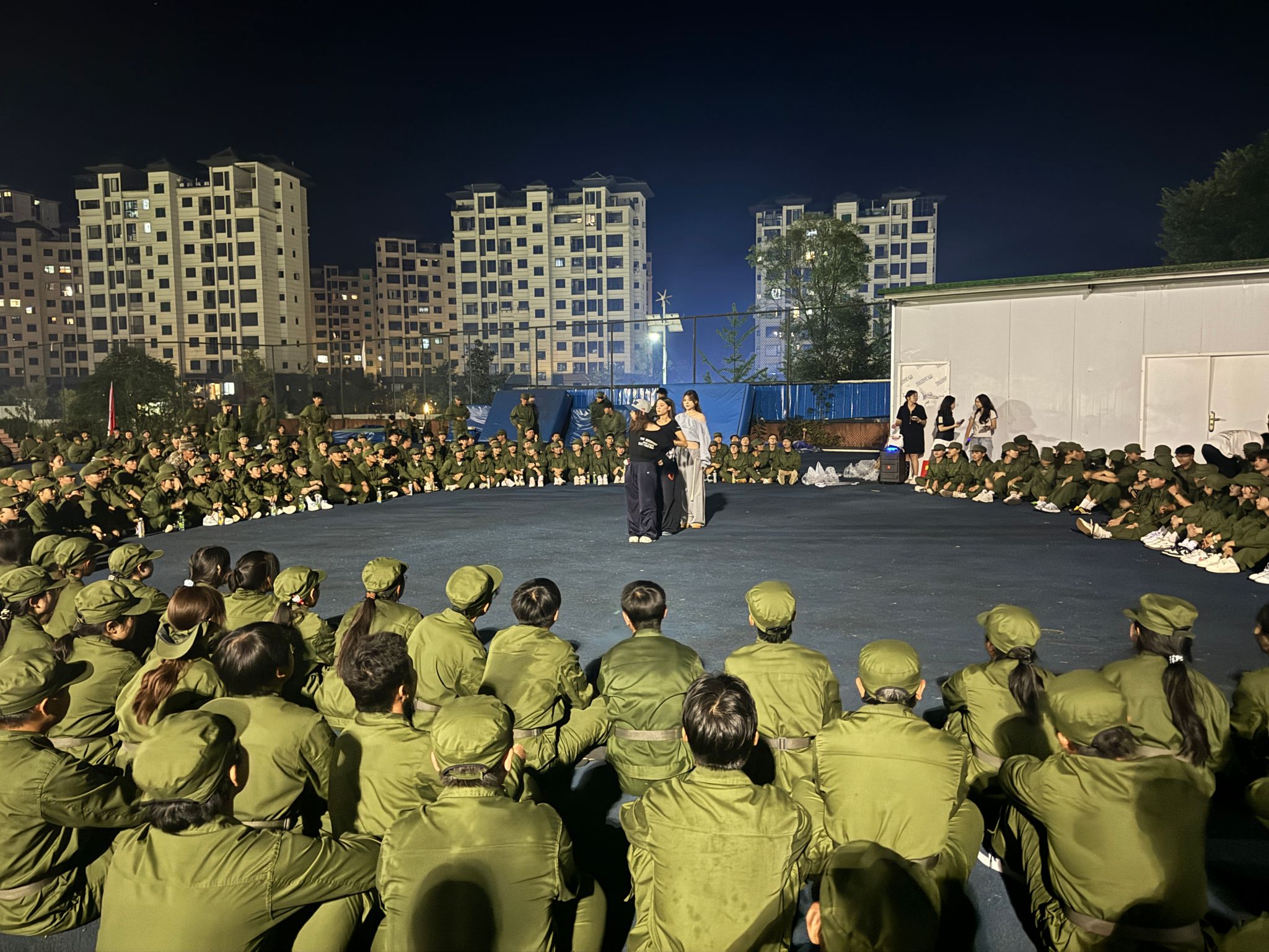 活动伊始,易睿对同学们的训练成果给予了充分肯定,鼓励同学们要珍惜军训时光,锻炼意志品质,培养团队合作精神,为大学生活打下坚实基础。随后,精彩的文艺表演与趣味互动环节轮番上演。精心编排的歌舞节目活力满满,赢得新生们阵阵掌声;而“击鼓传花”“化学知识抢答大赛”两项互动游戏更是将活动推向高潮——“击鼓传花”环节中,新生们在紧张的节奏里传递快乐,被选中的同学自信展示才艺;“化学知识抢答大赛”则巧妙结合专业特色,既考验新生的知识储备,又增添了军训生活的趣味性,工作人员还为积极参与的新生现场派发小礼品,让大家在欢笑中收获满满。