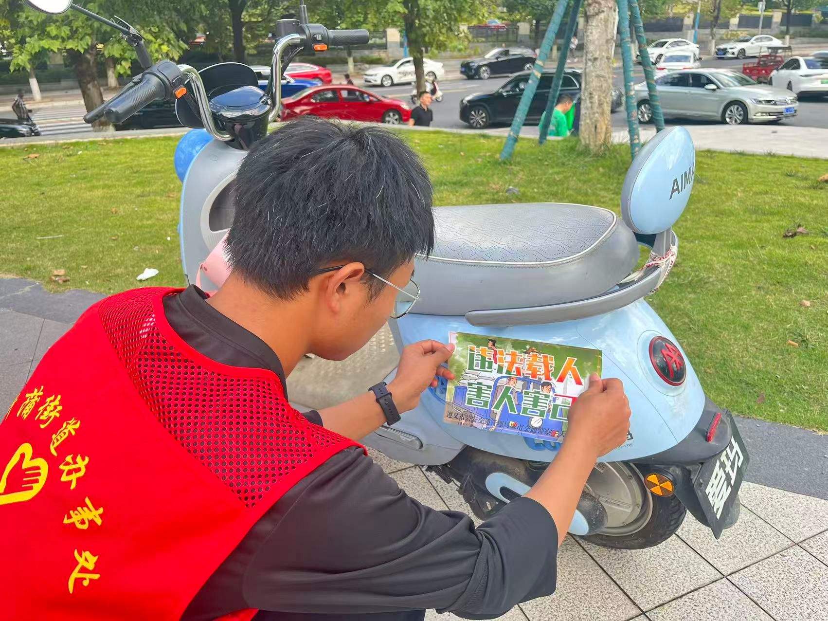 此次社区实践活动聚焦学龄前儿童的出行安全。活动现场,志愿者们分工明确、热情投入。他们主动走向在园外等候的家长,逐一发放交通安全宣传手册,并结合手册内容,耐心讲解日常接送孩子上下学途中的安全要点。针对社区内常见的电动自行车出行方式,志愿者们特别提醒家长,在骑行接送时务必为自己和孩子正确佩戴好安全头盔,将“一盔一带”的安全意识落实到每一次出行中,共同守护家庭与社区的平安。