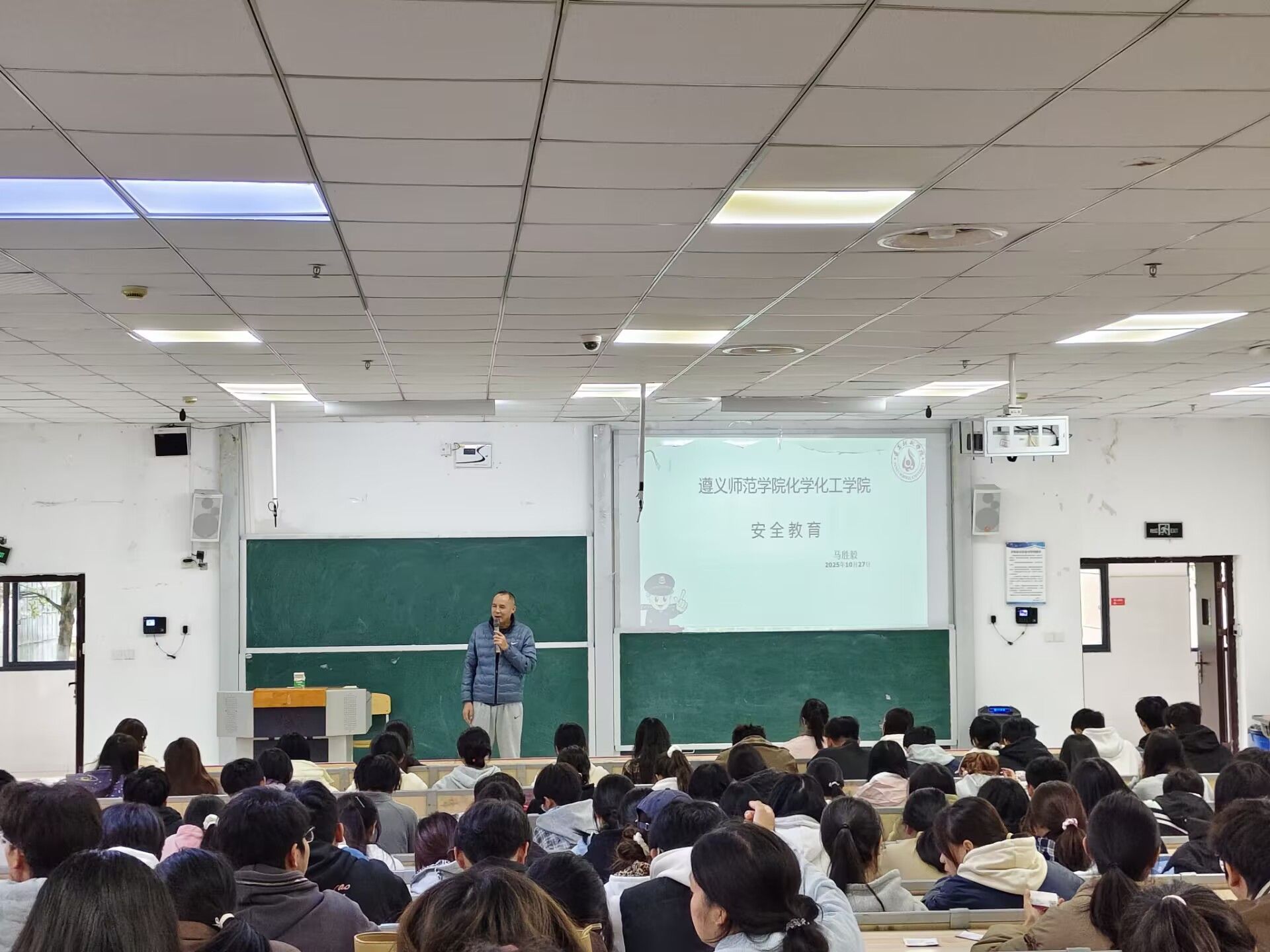 2025年10月27日,化学化工学院于执闳楼105教室成功举办2025级新生安全教育专题讲座。本次讲座是学院新生入学教育系列活动的关键一环,特邀学校保卫处治安科科长马胜毅担任主讲,2025级全体新生共同参与。