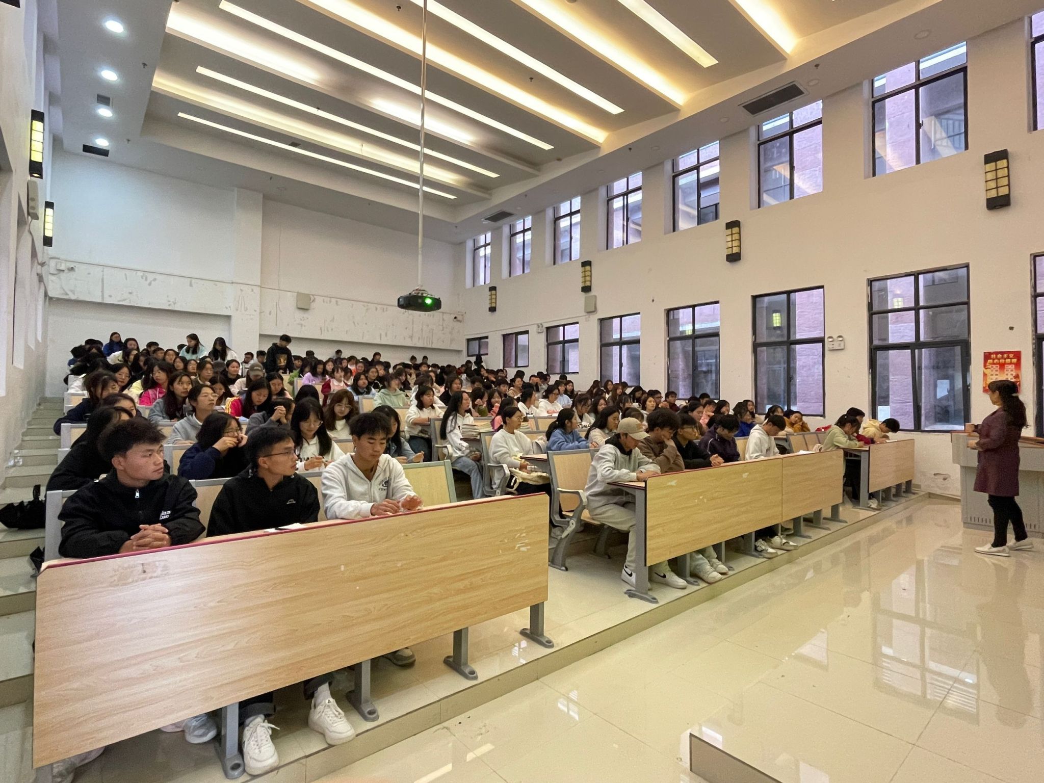 讲座中,金茜老师以“树立远大人生理想”为题,为同学们讲解了人生价值、奋斗目标的涵义;随后,围绕近年我院考研究生录取情况、大学生志愿服务西部计划参与情况以及我院服务基层学生风采展示等方面作了详细介绍,激励同学们在大学里奋发有为,度过有意义的大学时光。