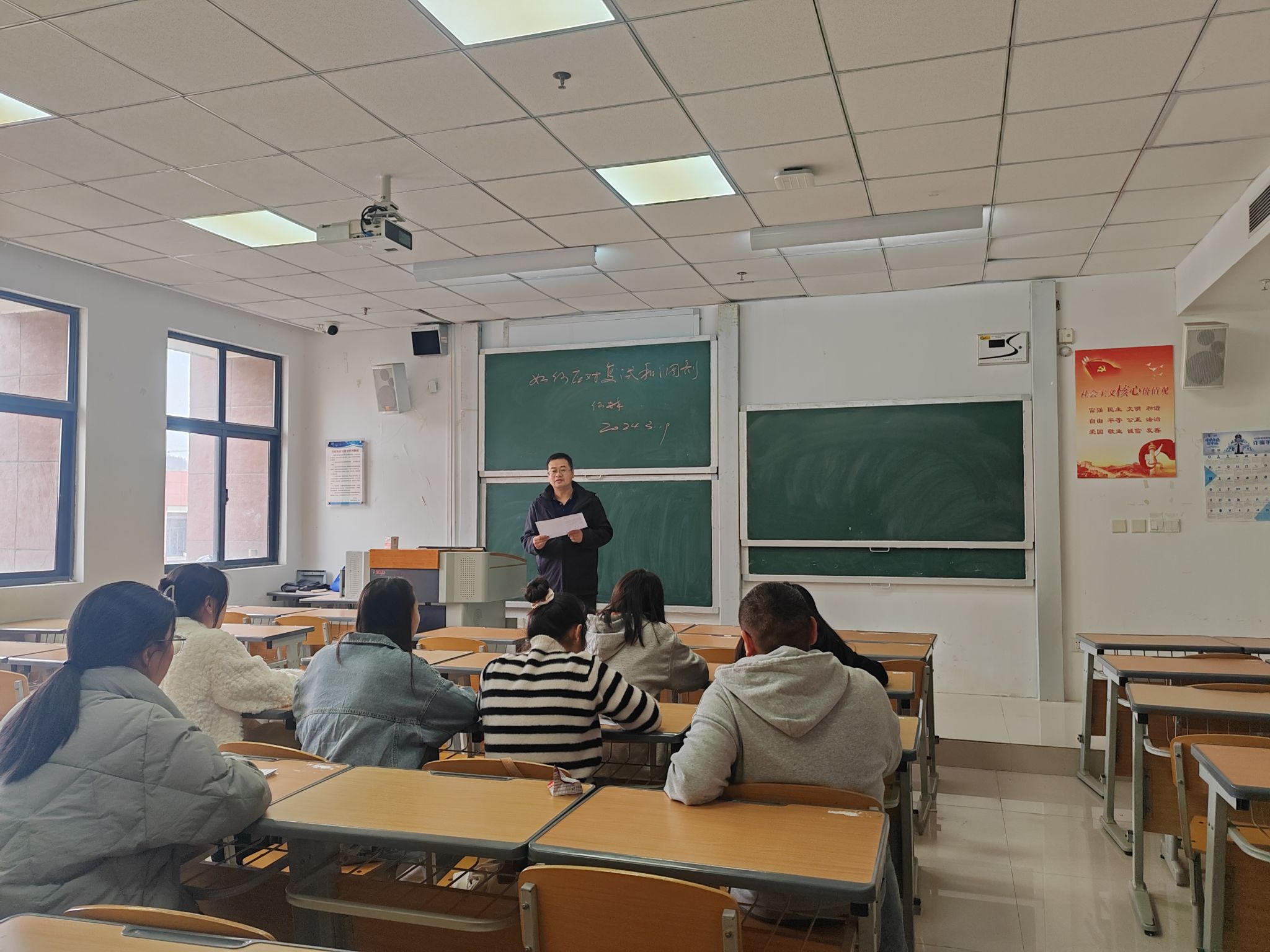 为持续推进化学化工学院材料化学专业2024届毕业生高质量就业,2024年3月19日,化学化工学院在执理楼401教室举行2024届材料化学专业就业及考研指导会,会议由李国辉老师主持,学院副院长何林进行指导。