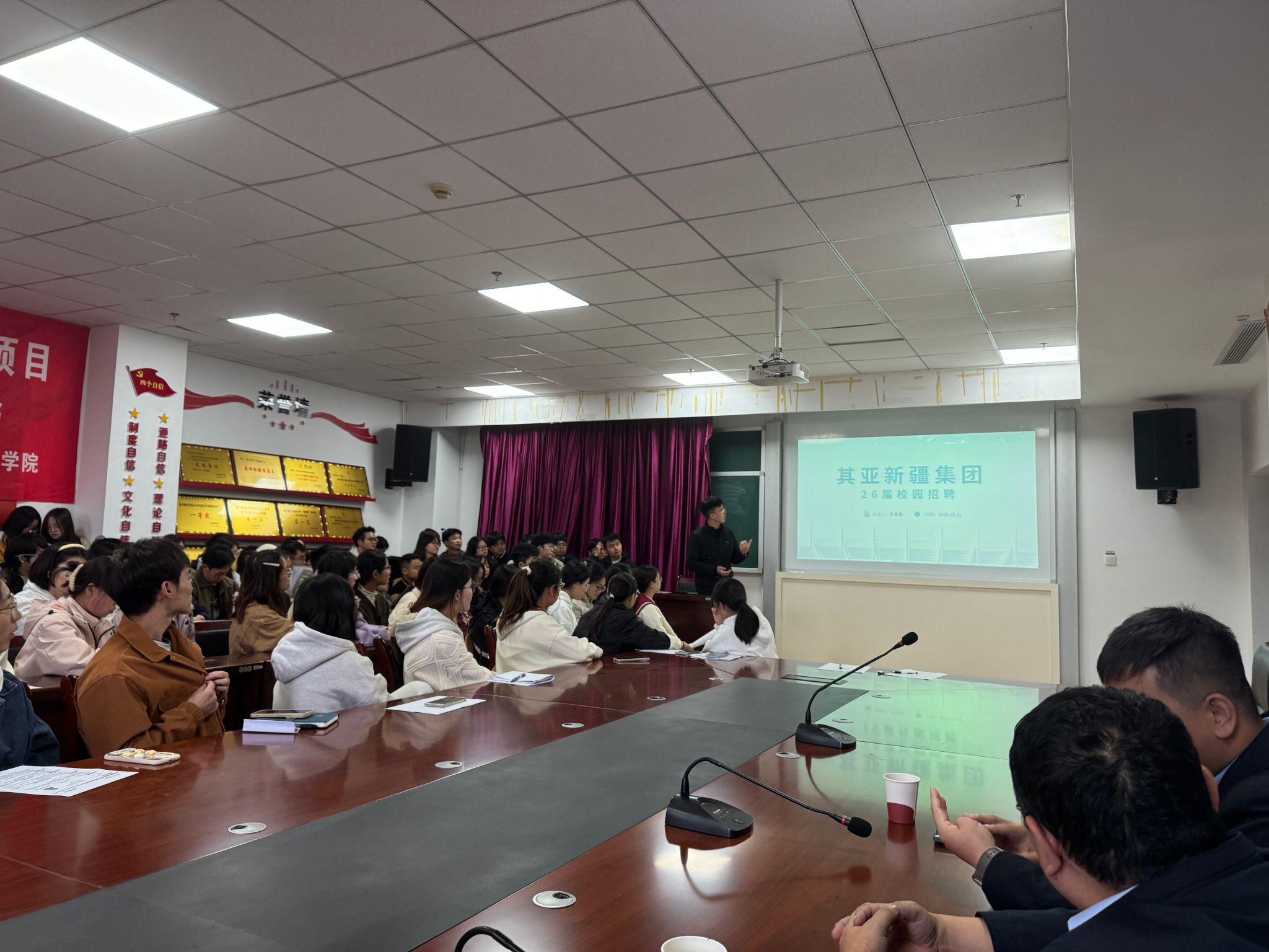 其亚新疆集团通过宣传视频,全方位展示发展历程、核心业务、技术创新成果及西部布局战略;随后人事部负责人详细解读企业文化、岗位需求、薪资待遇与晋升路径,并紧密结合西部发展机遇,鼓励毕业生立足专业所长、选择新疆作为人生舞台,在服务国家战略中实现自我价值。