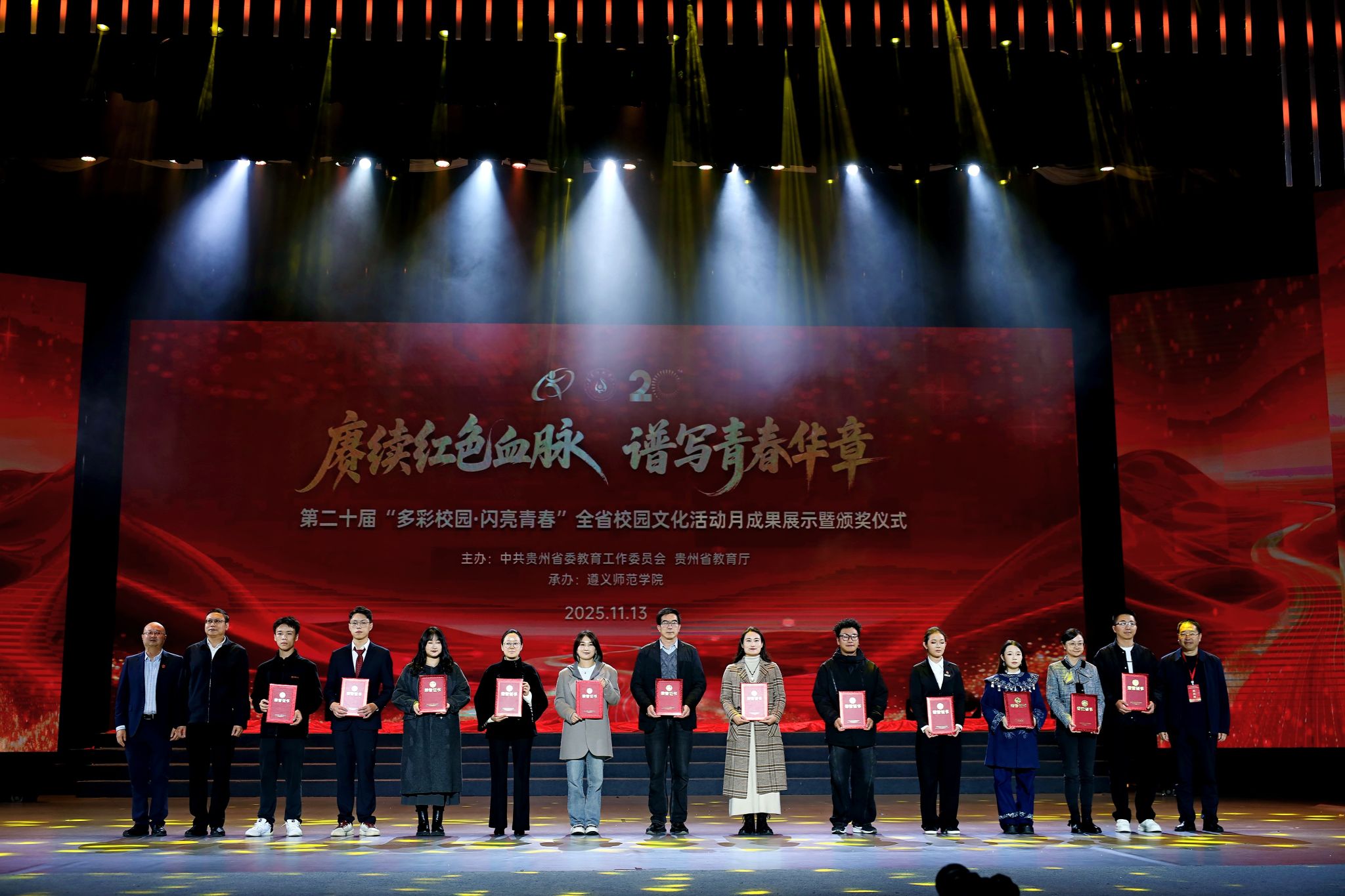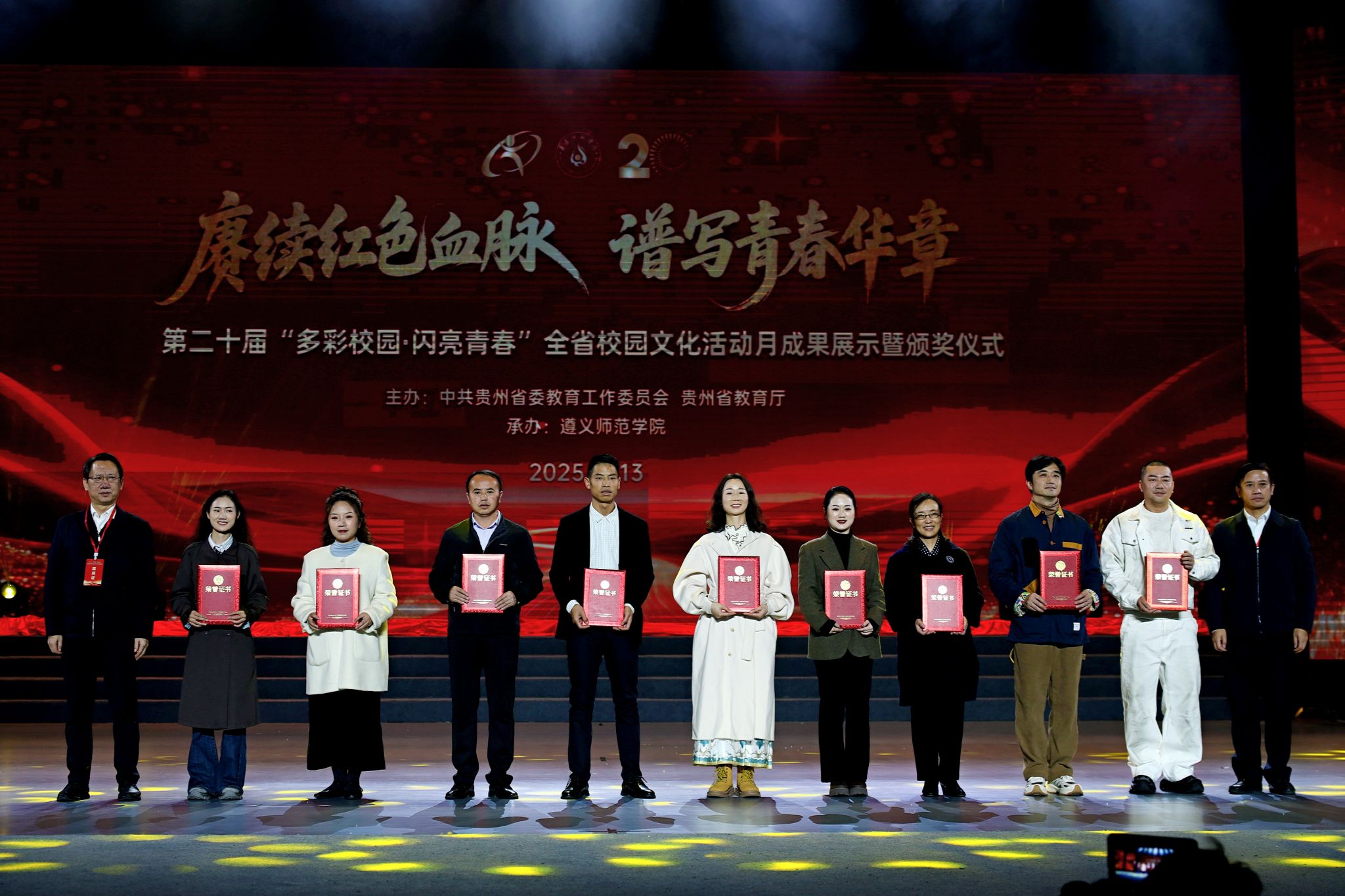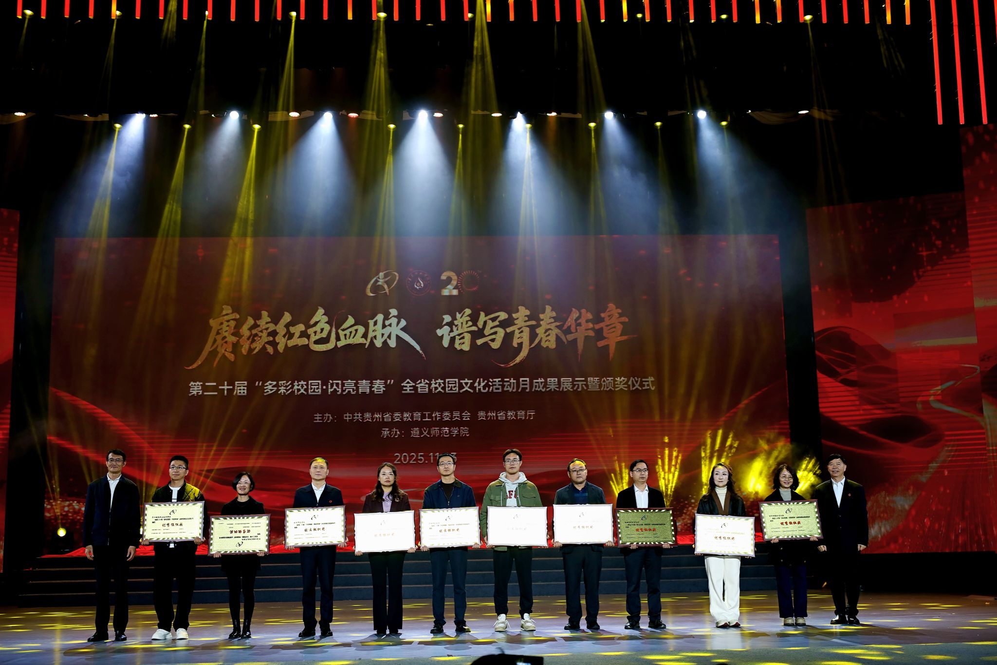 本网讯(文/蒲晓双 图/施宣) 11月13日下午,由中共贵州省委教育工委、贵州省教育厅主办的第二十届“多彩校园·闪亮青春”全省校园文化活动月成果展示暨颁奖仪式在遵义师范学院举行。