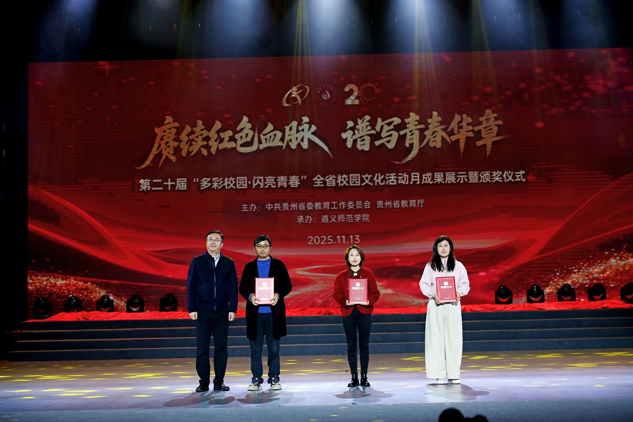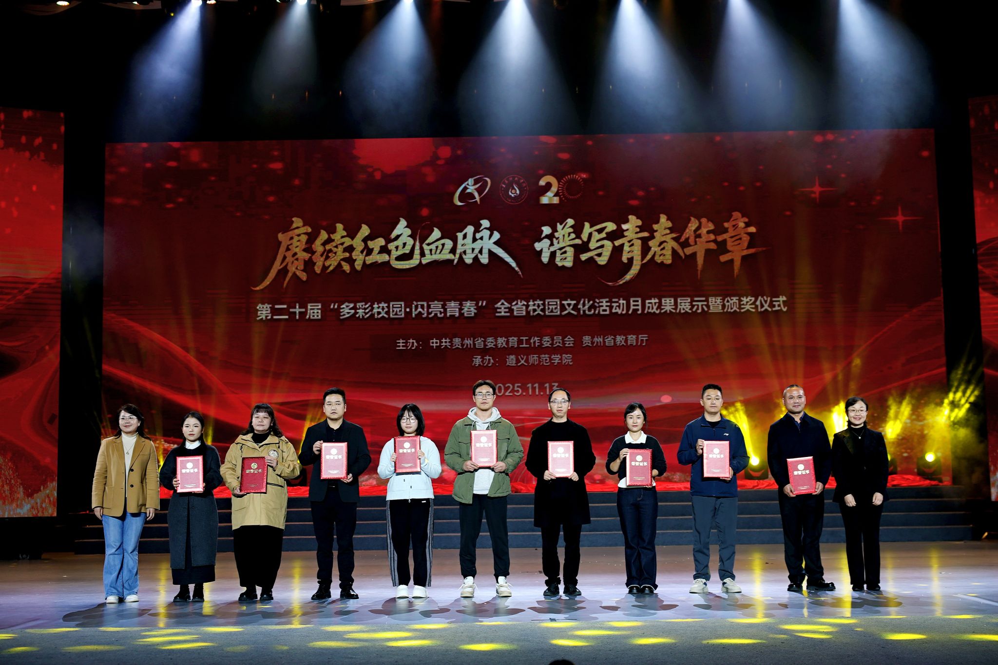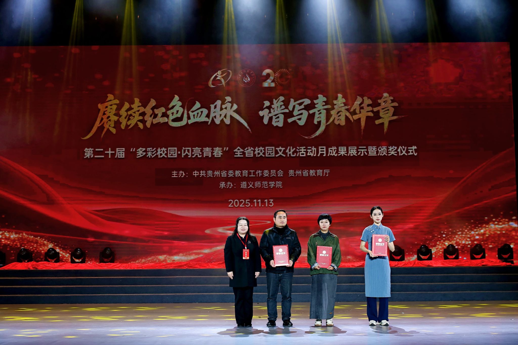 本网讯(文/蒲晓双 图/施宣) 11月13日下午,由中共贵州省委教育工委、贵州省教育厅主办的第二十届“多彩校园·闪亮青春”全省校园文化活动月成果展示暨颁奖仪式在遵义师范学院举行。