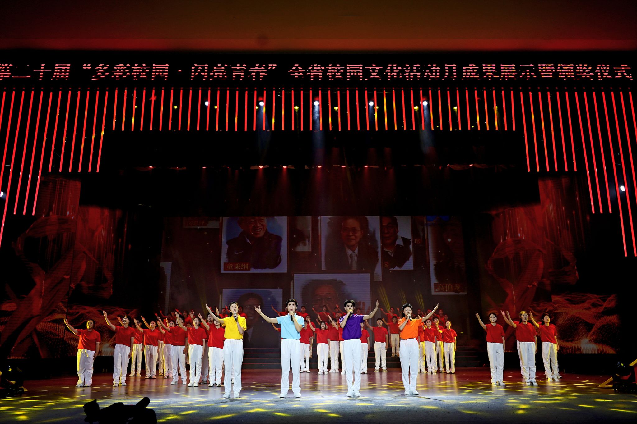 成果展示环节,本届校园文化活动月获奖作品代表和部分优秀校园文化作品通过“序”“第一篇章 山河铭记·革命者的忠魂”“第二篇章 钢铁熔炉·建设者的勋章”“第三篇章 星辰大海·青春的坐标”“尾声”逐一呈现,集中展现全省校园文化建设成果,深化美育浸润,引导广大师生深刻把握新时代伟大成就,投身强国建设、民族复兴伟业。