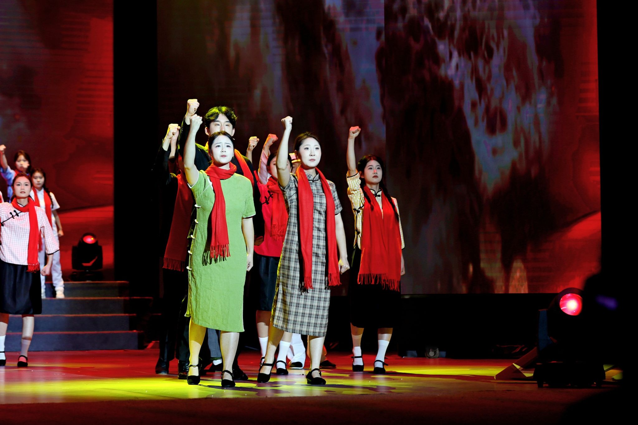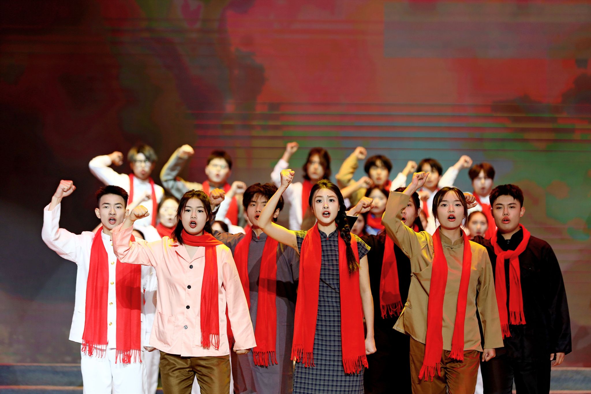 遵义师范学院的合唱《祖国不会忘记》与歌曲《黄河颂》《保卫黄河》《没有共产党就没有新中国》《我们走在大路上》,传递家国情怀,引发全场跟唱;红色剧本杀《风声之裘庄一刻》沉浸式演绎红色故事;舞台剧《三线长歌》再现三线建设者奋斗史;街舞与机器人表演《青春SHOW场》融合潮流与科技,为观众带来青春和科技之秀;情景朗诵《一封家书——抉择与怜子心》以革命先辈的故事展现了坚定信仰与无畏精神,情景朗诵《一封家书——丹心照归途》体现了知识分子的至诚报国,与汇川区重庆路小学合作的情景朗诵《一封家书——雪域红心》则反映了遵师青年“忠诚、坚韧、担当”的“红心”特质,打动观众。