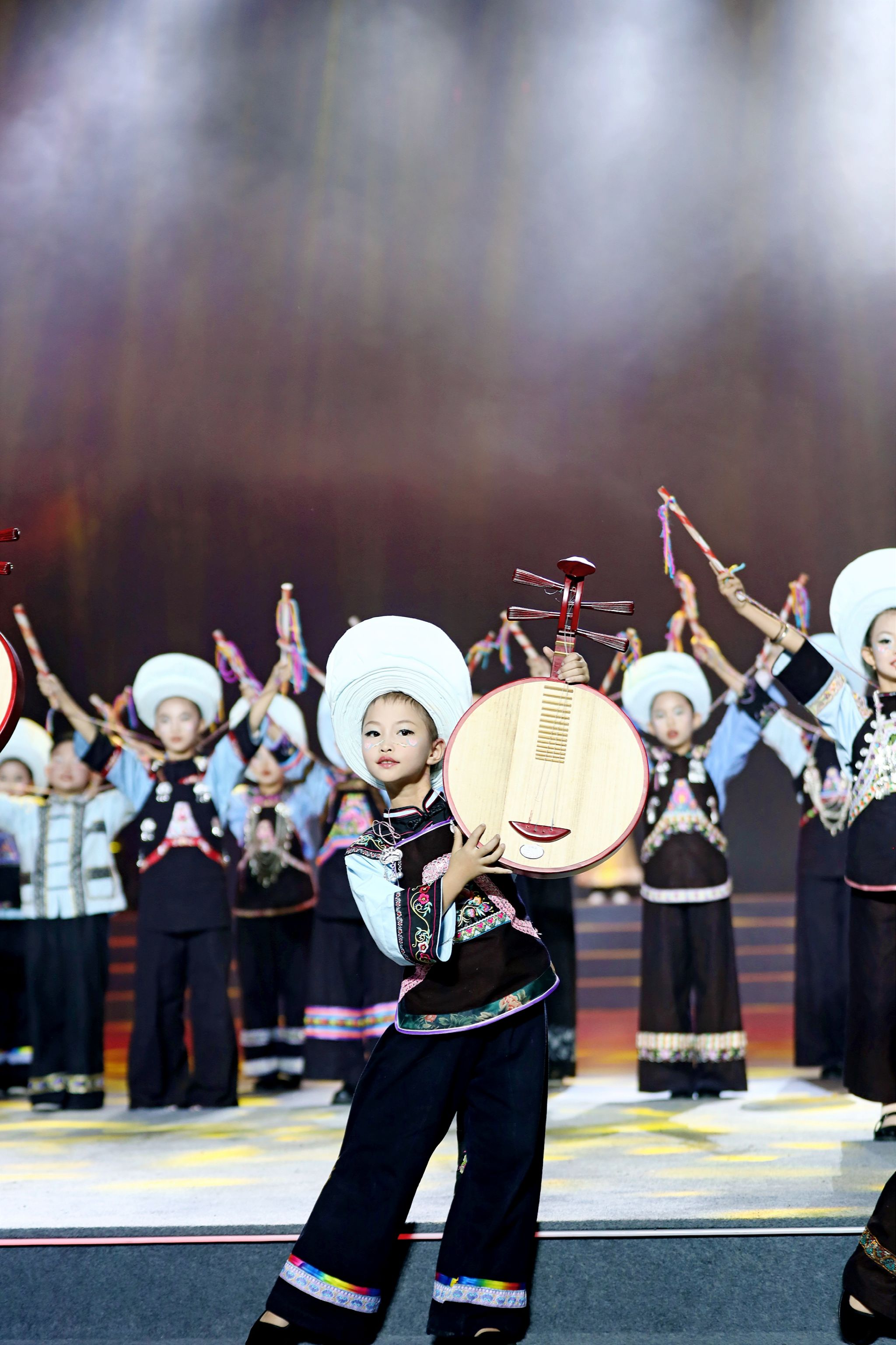 贞丰县第一小学、汇川区重庆路小学学生携手演唱《玉盘》,稚嫩嗓音搭配活泼动作,尽显童真,为活动增添灵动色彩。