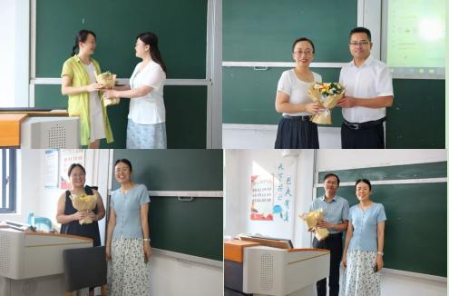 教师教育学院党委书记王洪叶,党委副书记、院长朱海,副院长王文乔、李章琼分别为退休教师赠送鲜花和纪念品。