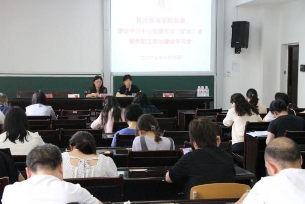 2025年6月6日教师教育学院在执毓楼103会议室开展了党委理论学习中心组第七次(扩大)会暨教职工政治理论学习会。本次会议由学院党委书记王洪叶主持,全体教职工参加