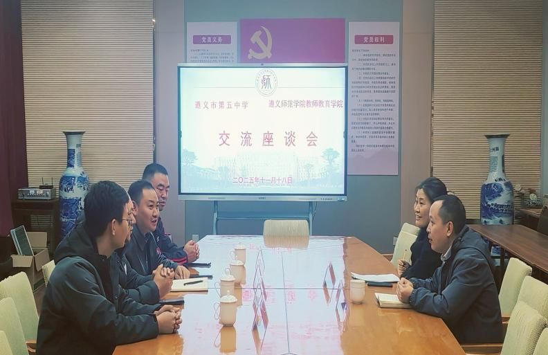 11月18日,遵义师范学院教师教育学院与遵义市第五中学在执毓楼319会议室开展交流座谈会,遵义市第五中学副校长胡宇、学生发展中心主任汪金志、高三年级部主任安治广、高一年级部主任龙伟,教师教育学院院长周云、副院长侯慧庆参加座谈。
