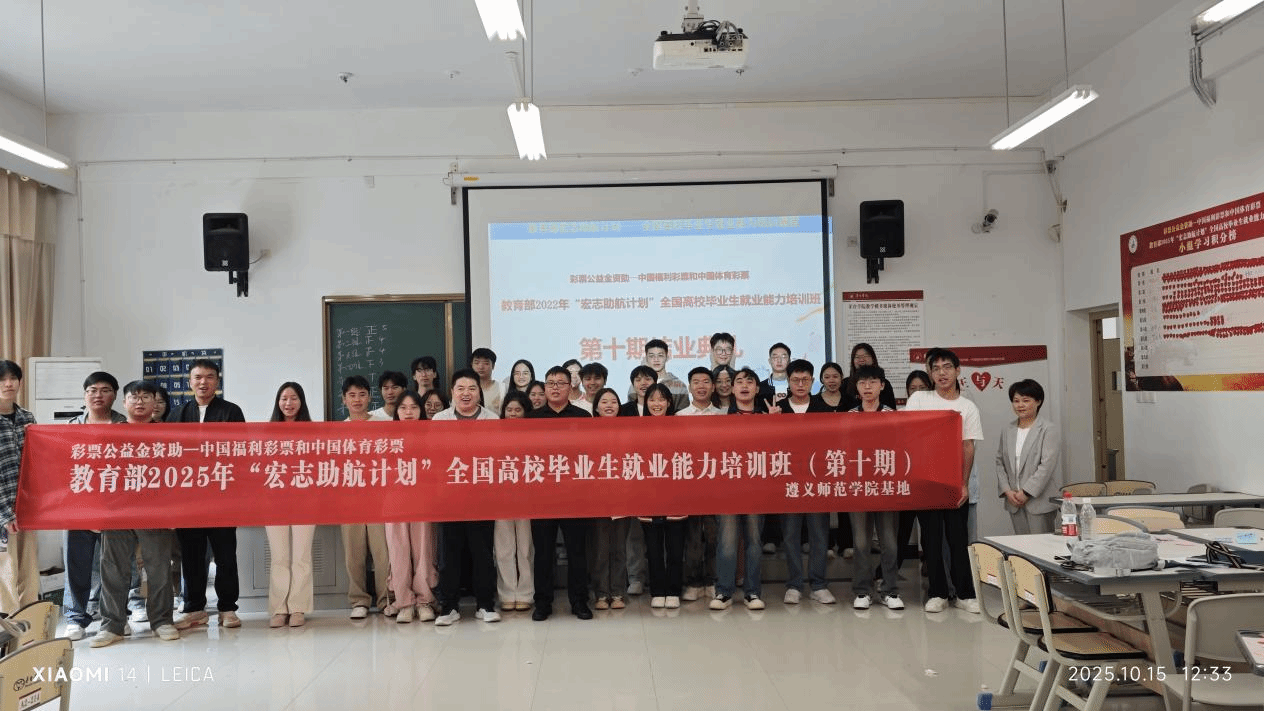 10月11日至10月15日,“中央专项彩票公益金宏志助航计划”遵义师范学院全国高校毕业生就业能力培训基地在茅台学院A2-214教室组织开展了2025年第十期宏志助航计划培训。