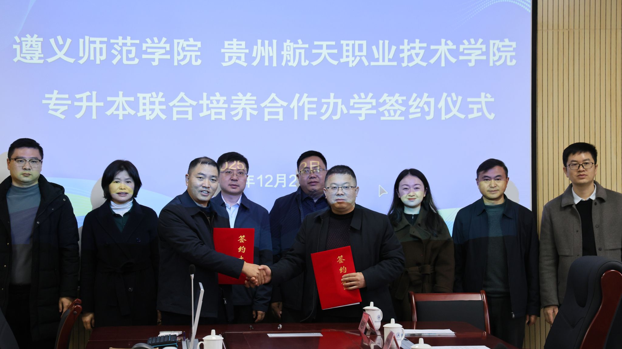 12月22日,遵义师范学院党委常委、副校长吴波一行赴贵州航天职业技术学院,签署电子信息科学与技术专业专升本联合培养协议。