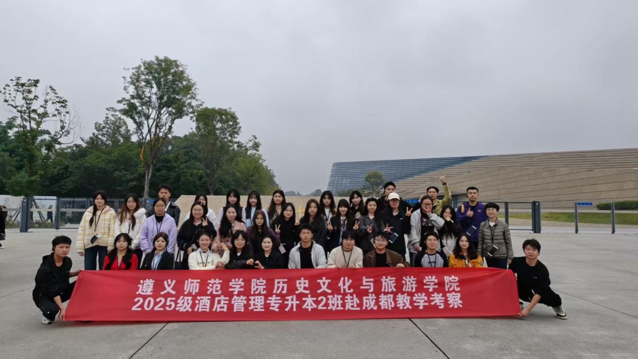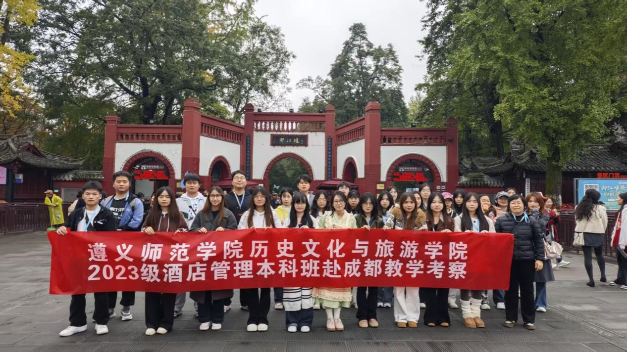 为深化理论与实践融合,拓展学生人文素养与专业视野,11月3日至7日,我院组织2023级历史班、酒店管理班;2025级酒店管理专升本1、2班赴历史文化名城成都,开展了为期五天的教学考察。考察团一行先后探访了杜甫草堂、武侯祠、都江堰、成都博物馆及三星堆博物馆等核心文化地标,教学成果丰硕,行程圆满成功。
