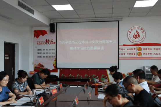 我院党总支书记党会先、院长陈季君、副院长郗玉松、教工第二党支部书记禹玉环以及中国史教研室主任咸成海都作了发言。禹玉环老师说到:“通过学习习近平在中共中央政治局第五次集体学习重要讲话精神,进一步加深了我对教育兴则国家兴,教育强则国家强的理解,也让我更加觉得,作为新时代的人民教师,责任重大、使命光荣。作为遵义师范学院的一份子,我一定要在“躬耕教坛,强国有我”的志向引领下,走好自己新时代的长征路,不断加强师德修养,提高学识涵养,潜心教书育人,为教育强国贡献自己的一份力量。”