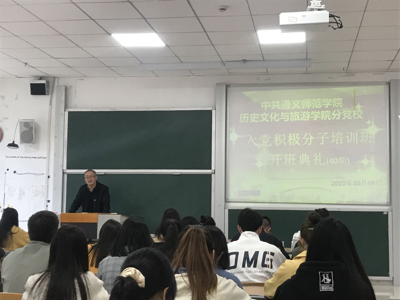 2020年10月9日,在执文楼115教室,历史文化与旅游学院2020下入党积极分子培训班正式开班。出席开班典礼的有历史文化与旅游学院党总支书记李洪超同志,副书记洪圣达同志,学生科负责人陆铮铮老师,专职组织员张志远老师。会议由陆铮铮老师主持。