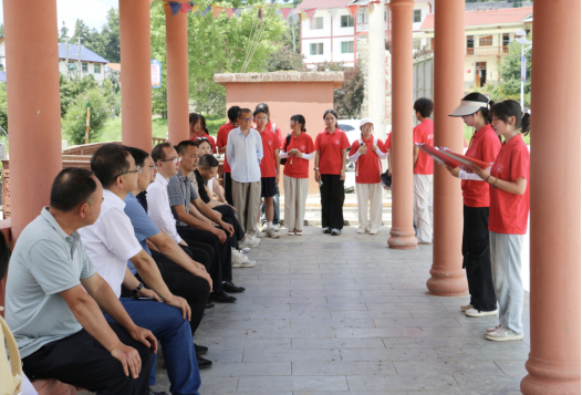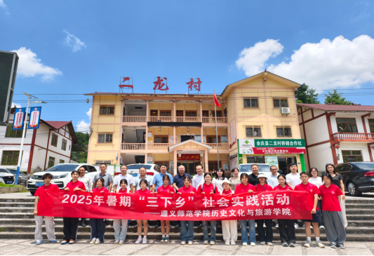 2025年7月14日,学校党委副书记周晶带领同心筑梦、石榴花开社会实践队奔赴志愿服务地——余庆松烟二龙村,开展2025年暑期“三下乡”社会实践活动。学校党委委员、纪委书记王斌、团委书记余睿、历史文化与旅游学院党总支书记党会先、院长郗玉松、副院长余昊、松烟镇党委书记鄢忠林、镇长王宁、二龙村村支书陈小庆及实践队师生参加活动座谈会。
