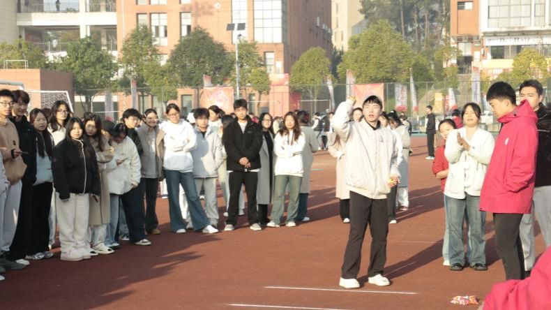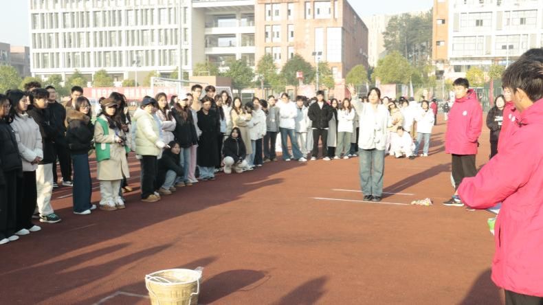 蓄力、转身、投掷——沙包如流星划破天际,每一次投掷都是力量的展示,每一次落点都引发全场欢呼,展现出我院学子昂扬的竞技姿态。