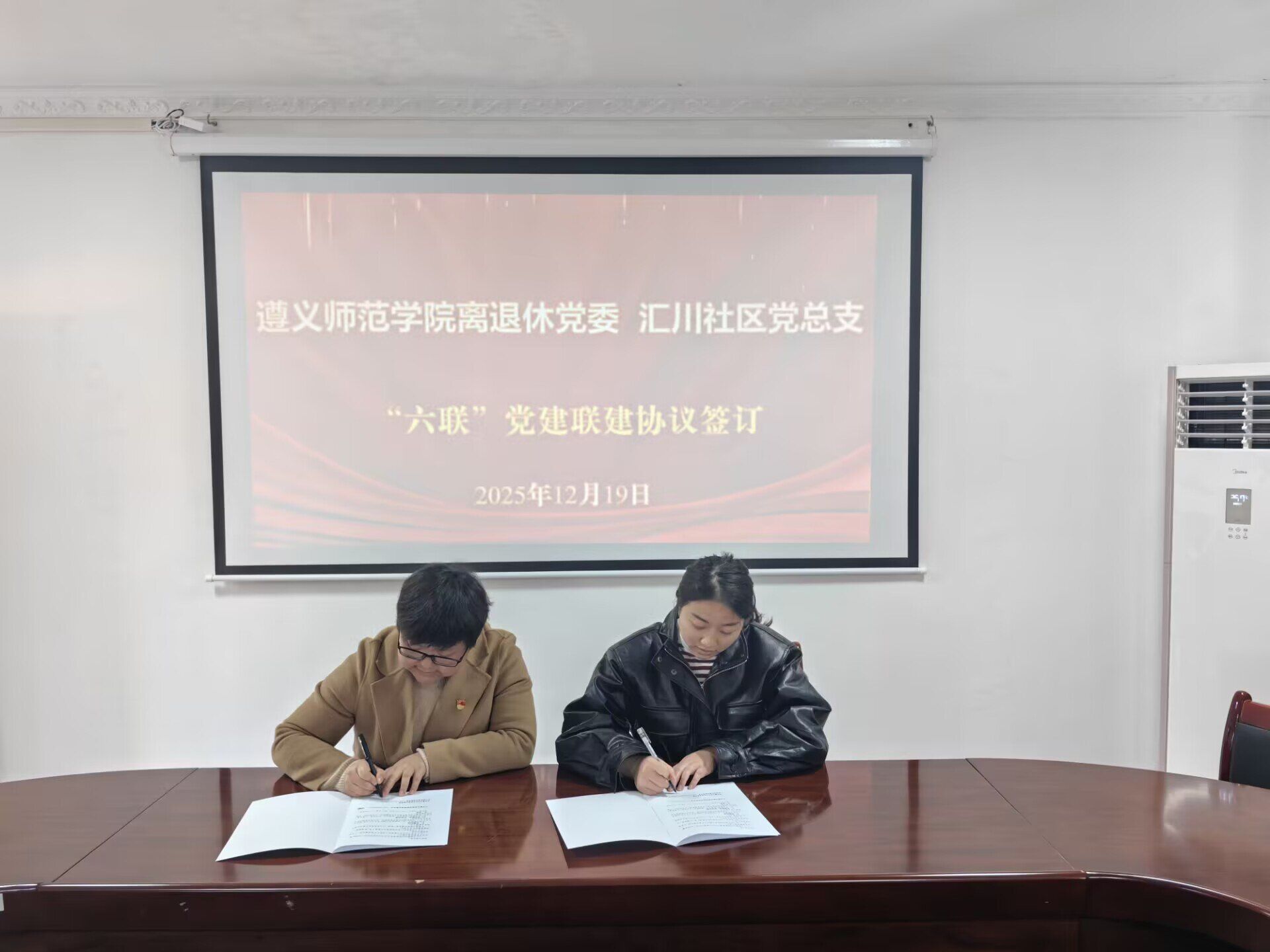12月19日上午,中共遵义师范学院离退休委员会与中共遵义市汇川区洗马路街道汇川社区总支部委员会,在上海路退休教职工活动中心二楼会议室举行“六联”党建联建协议签约仪式。双方旨在通过党建联建新模式,整合资源、服务群众,共同探索基层党建引领社区治理与为老年群众服务的新路径。