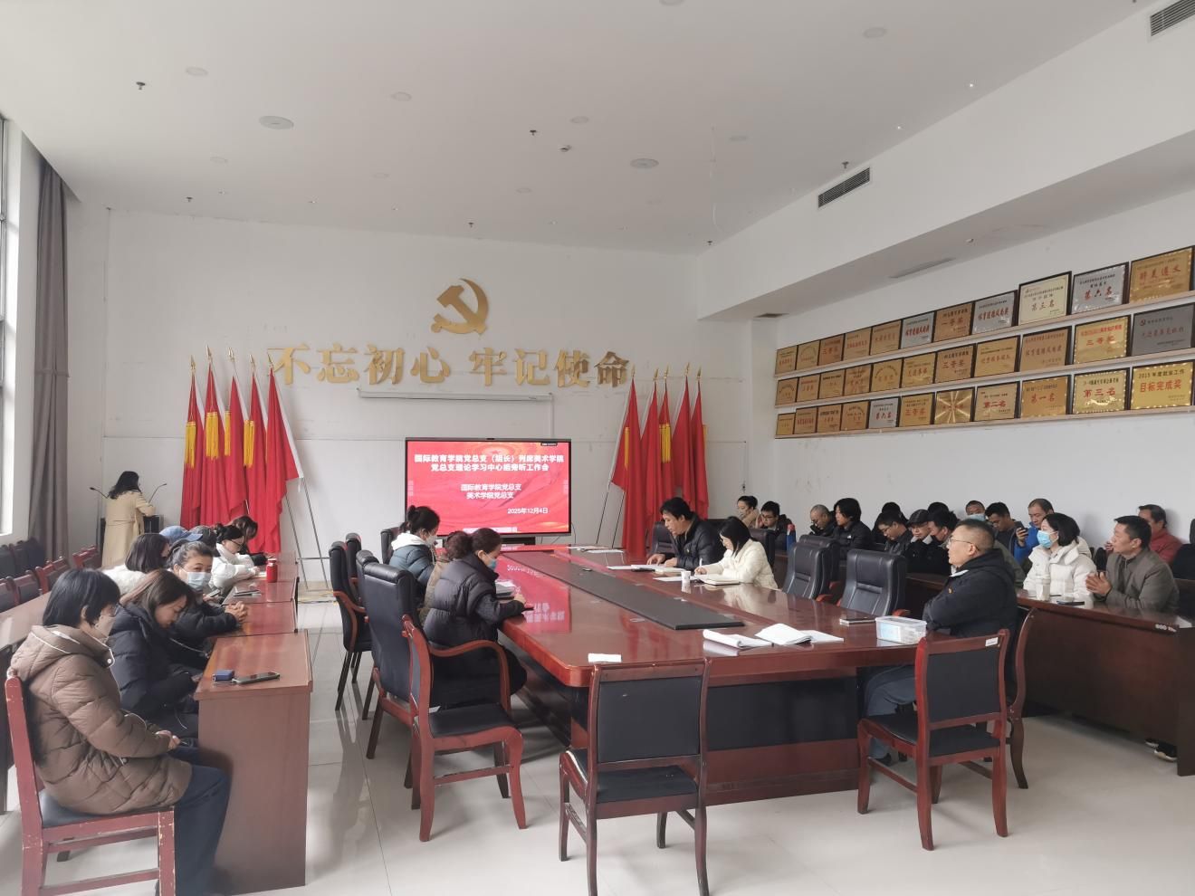 2025年12月4日,遵义师范学院美术学院党总支理论学习小组在执艺楼B209会议室召开专题会扩大会议,围绕美术学院师生思想政治工作情况展开深入研讨。国际教育学院党总支书记王小敏作为特邀嘉宾列席旁听。会议由美术学院党总支副书记李强主持。