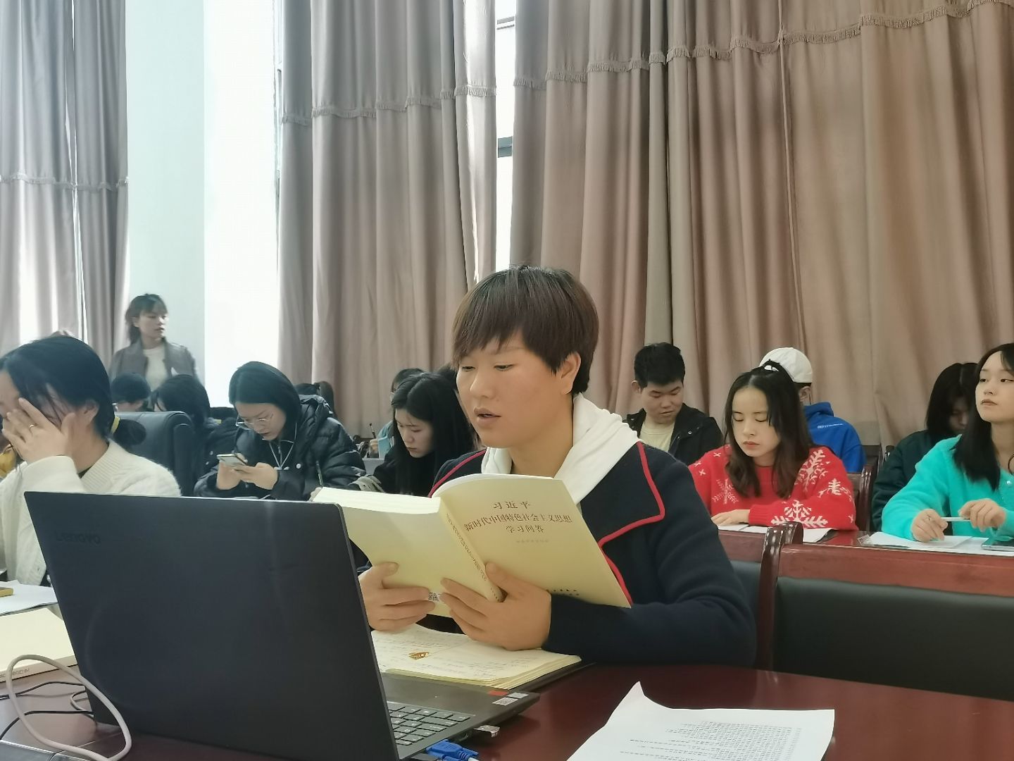 郑霞同志谈到:习近平新时代中国特色社会主义思想承前启后、继往开来,全面把握中华民族伟大复兴战略全局和世界百年未有之大变局,是关乎中国前途命运的当代中国马克思主义。并要求全体同学要深刻领会学习内容,将个人的学习和生活与中华民族伟大复兴的中国梦紧密连结在一起,深化学习和践行习近平新时代中国特色社会主义思想。