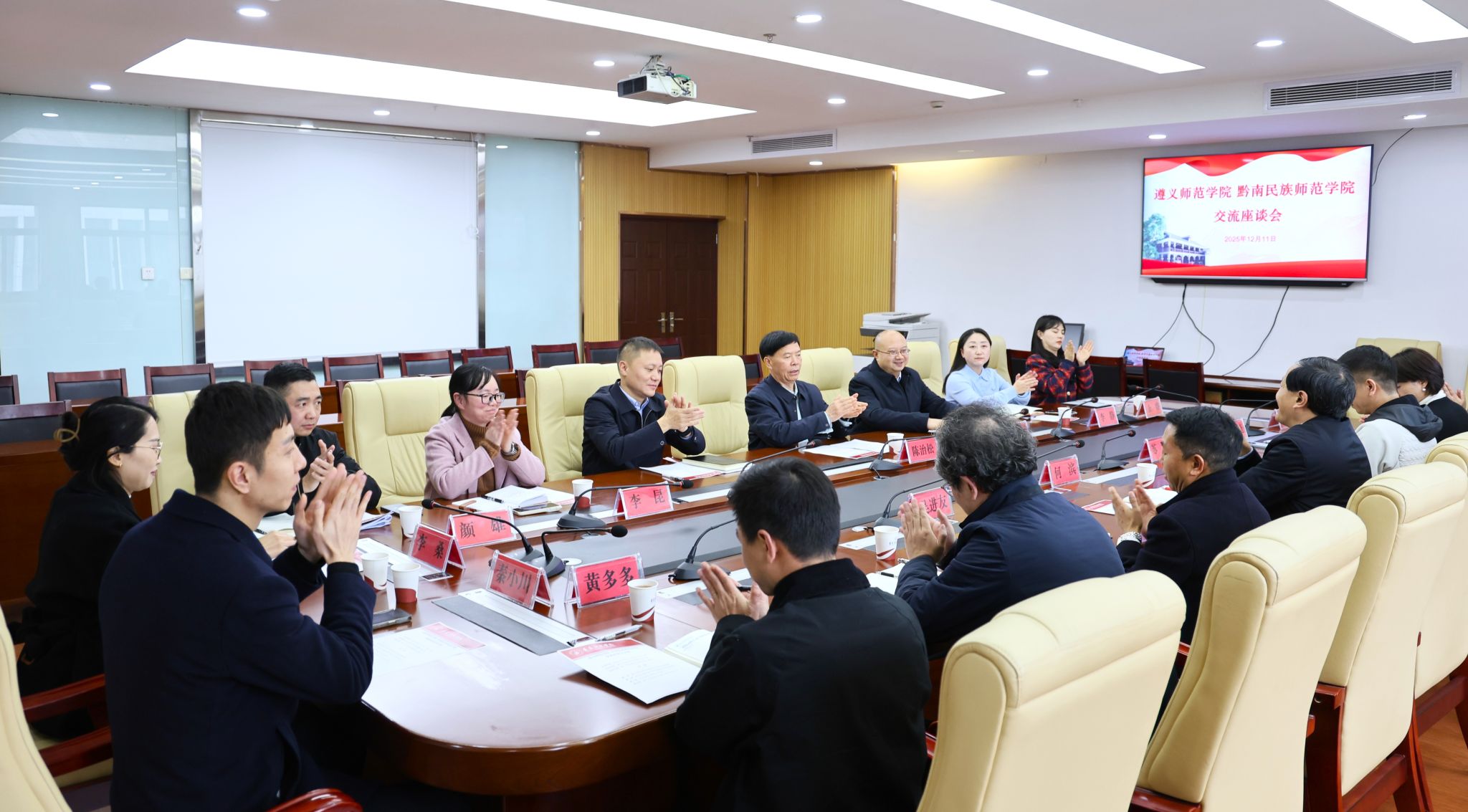 本网讯(文/党政办公室 图/李德鑫) 12月11日下午,黔南民族师范学院党委副书记何滨率队访问遵义师范学院,双方在行政楼516会议室举行交流座谈会。会议由遵义师范学院党委书记陈治松主持。