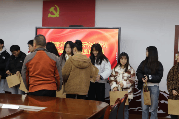 活动最后,学院为全体考研学子发放慰问礼品,以暖心举措凝聚奋进力量,祝愿学子们在考试中发挥最佳水平,金榜题名、成功上岸。