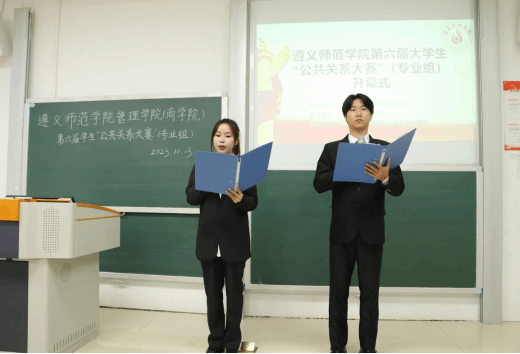 为构建和谐社会、助力乡村振兴、传承红色文化,展示新时代大学生的综合素质与青春风采,2023年10月13日15:00,由共青团遵义师范学院委员会主办,管理学院(商学院)承办的“青春师院·一院一精品”第六届大学生公共关系大赛(专业组)在执治楼103教室隆重举行。本次大赛邀请到蔡婷、史文涛、马艳玲老师担任评委,来自学院各班的12支参赛队伍及学生代表参加,大赛由李硕和李芝浪主持。