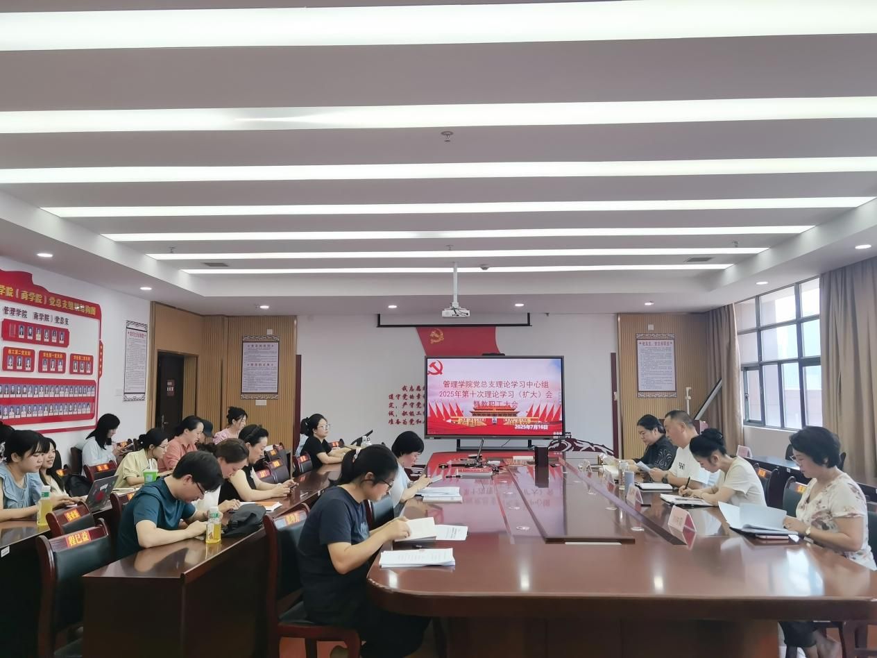 7月16日,管理学院党总支2025年第十次理论学习(扩大)会顺利召开。党总支委员及全体教职员工参与学习,会议由党总支书记华定强主持。