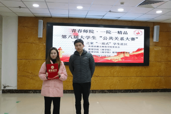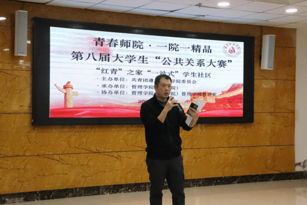 为提升学生公共关系专业素养,推动专业实践教学与学科建设,11月7日14:00,由共青团遵义师范学院委员会主办、管理学院(商学院)承办的“青春师院·一院一精品”公共关系大赛(专业组)在“红青”之家“一站式”学生社区事务中心一楼大厅成功举办。