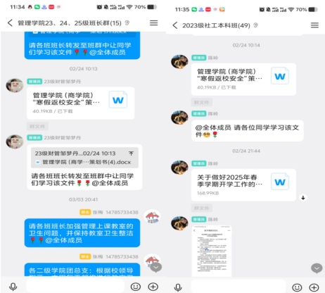 保持联络与信息畅通:要求学生保持通讯畅通,定期与辅导员、班委保持联系,及时反馈个人情况,确保突发情况能够及时联系与处置。