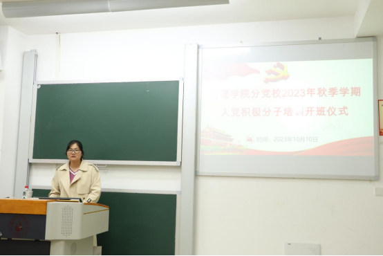 2023年10月10日15:50,管理学院(商学院)在执治楼103教室开展2023年秋季学期入党积极分子培训开班仪式暨遵义会议和遵义会议精神专题党课。管理学院(商学院)党总支书记华定强、辅导员张坤美及本期全体入党积极分子参加。