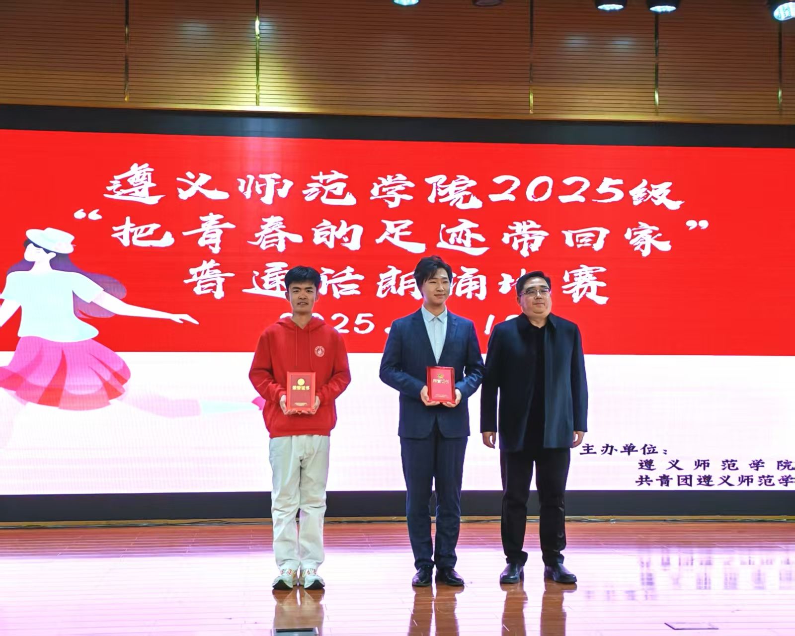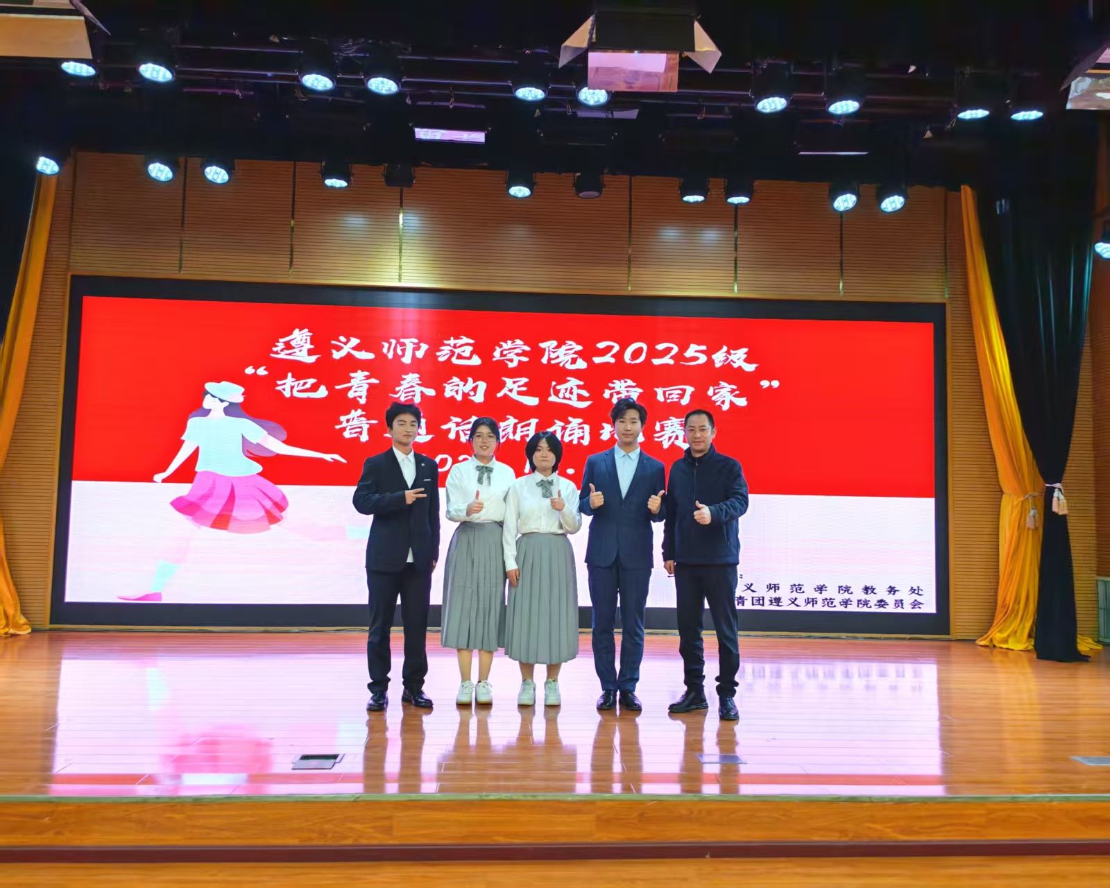 2025年12月19日,遵义师范学院“把青春的足迹带回家”2025级普通话朗诵比赛圆满落幕。来自人文与传媒学院25级汉语言文学专业的牛犇、李欣彦、高依涵、吴宜泽四位学子凭借深厚人文素养、精湛朗诵技艺,以96.67高分勇夺一等奖,尽显学院“文心”青年的风采。