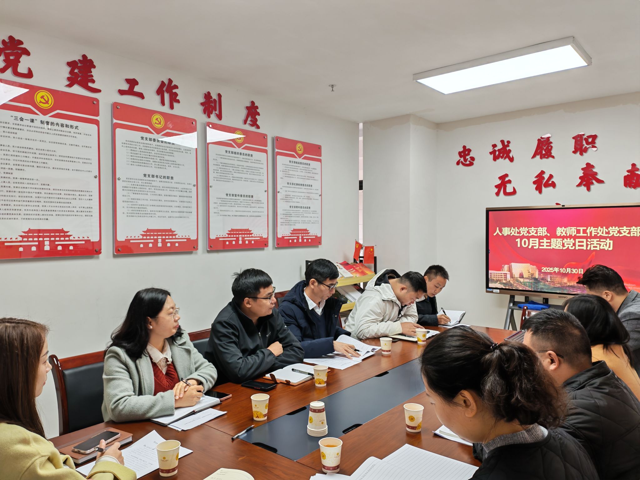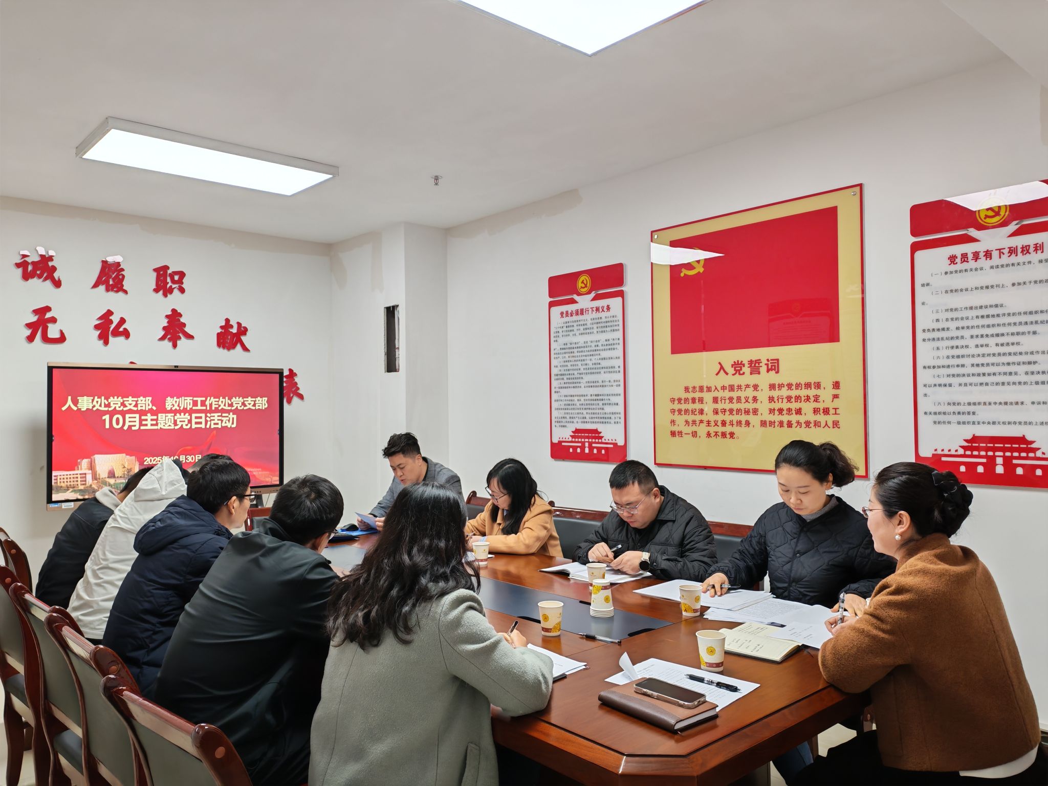 2025年10月30日人事处党支部、教师工作处党支部联合开展10月主题党日活动,人事处党支部、教师工作处党支部全体党员参加。