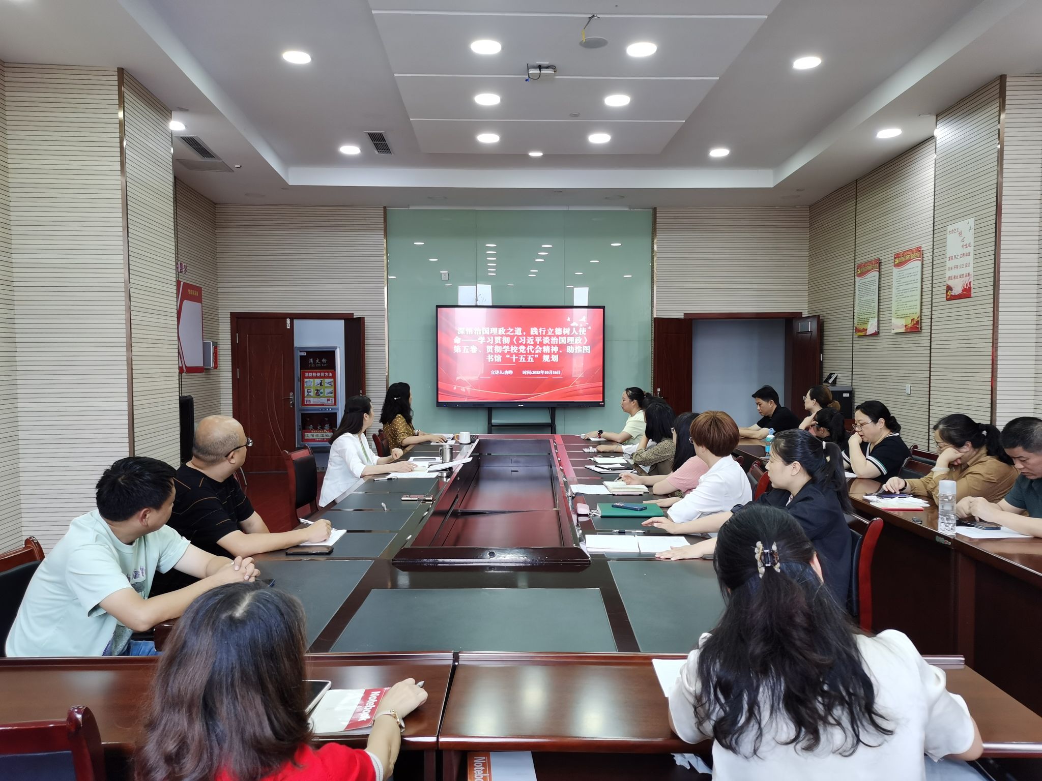 10月16日,图书馆党总支在314会议室开展理论学习中心组学习暨学习《习近平谈治国理政》第五卷“理论宣传二人讲”宣讲,全体党员参加、非党员列席会议。党总支委员、馆长蓝卡佳主持会议。