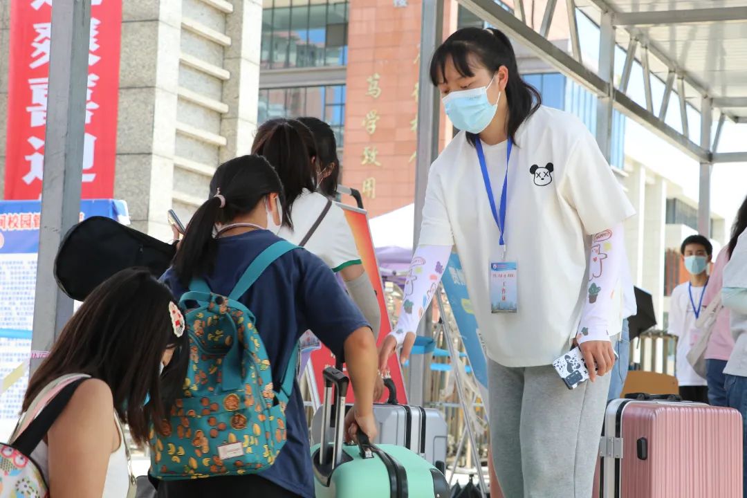 拉着行李箱,来到校门口,开学入校“三连”了解下。我们的青年志愿者们也会全程协助同学们完成入校“三连”哦!完成健康申报、出示健康码、行程码、疫苗接种记录,再来给行李消消毒。”OK,恭喜你成功入校。