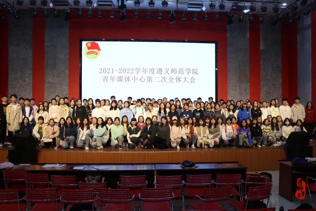 金秋十月,瓜果飘香,在这个收获的季节,青年媒体中心也收获了一批新鲜的血液——150多位新成员。为了让他们更好地融入集体、了解工作职能、熟悉工作环境,青年媒体中心(以下简称“青媒”)于10月12日中午在学生中心长征讲堂召开了“遵义师范学院青年媒体中心2021-2022第一学期第二次全体大会”。校团委文体部老师敖正雅,青年媒体中心主席罗沙沙及全体新老成员参会,会议由摄影部姚迪主持。