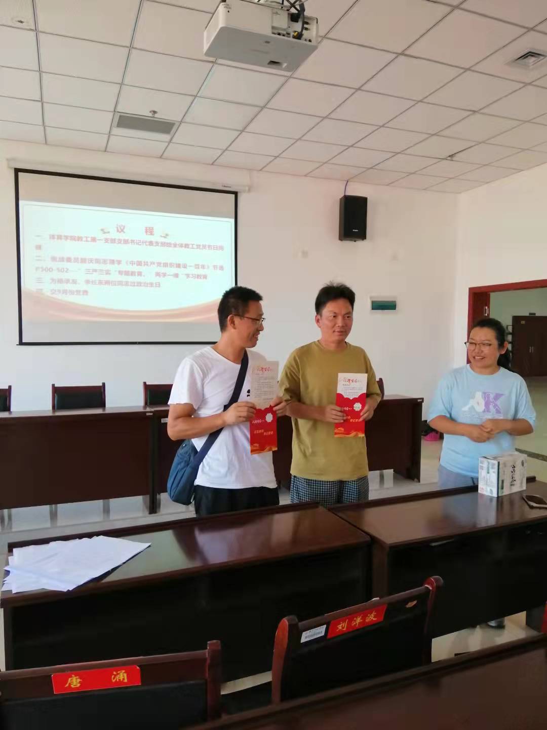 9月10日,体育学院教工第一支部下午3:30在体育学院403会议室召开了主题党日---喜迎第37个教师节活动。会议由支部书记胥爱红主持,会议议程有学习《中国共产党组织建设一百年》节选、观看“教师颂”系列视频、为杨承友、李长东两位同志过政治生日